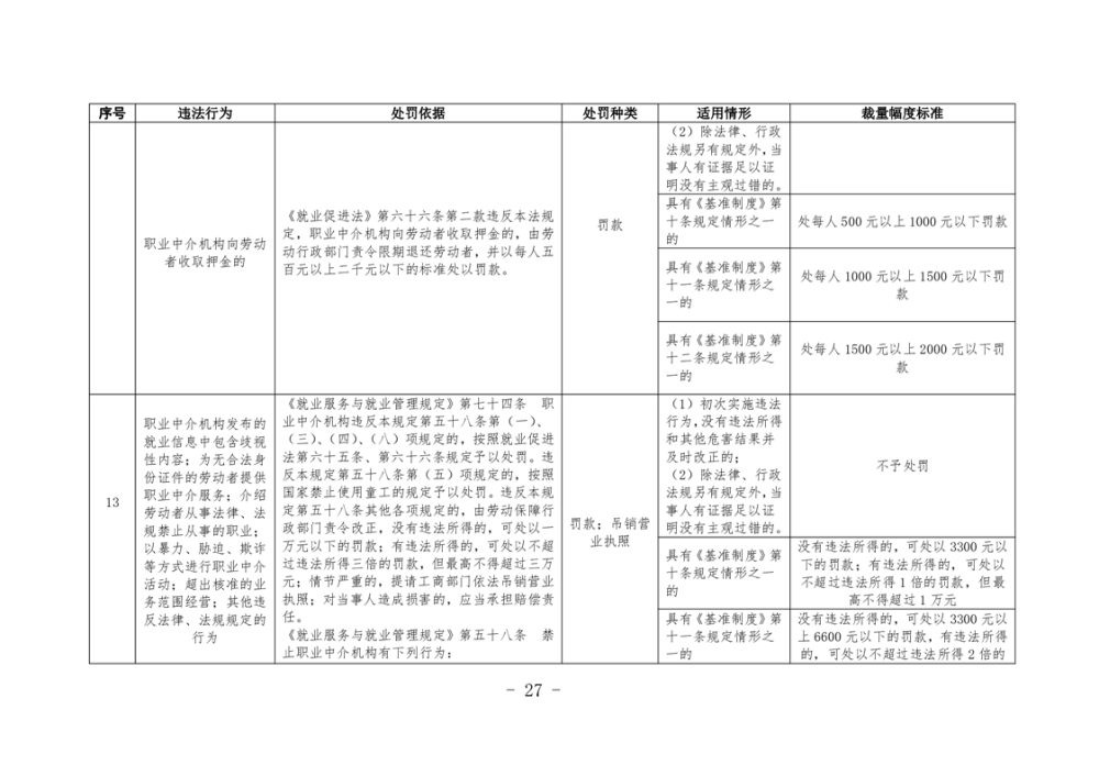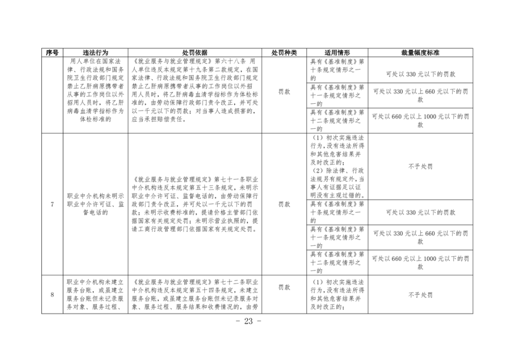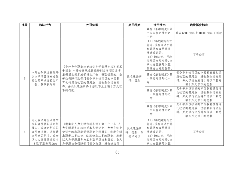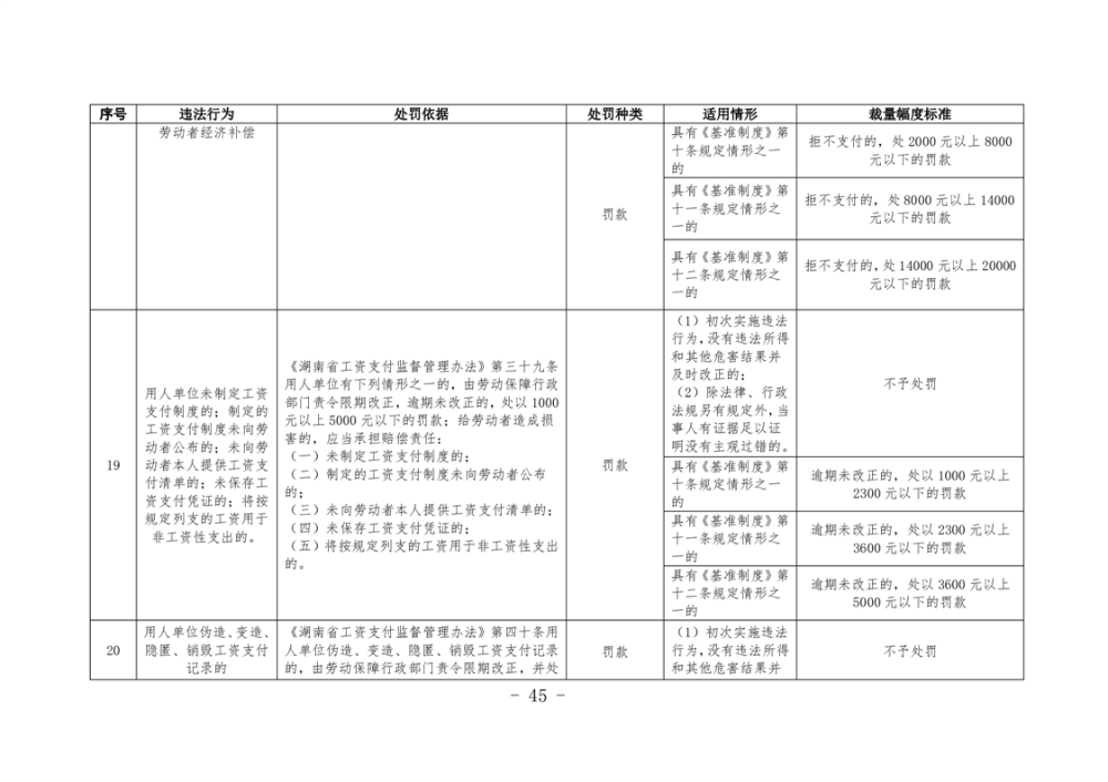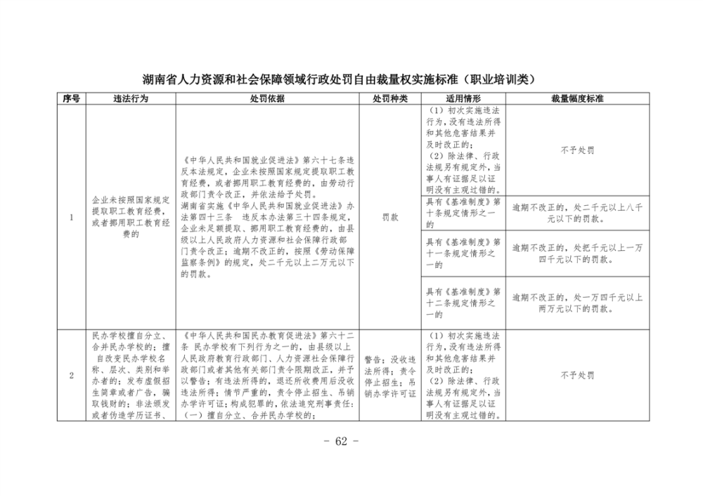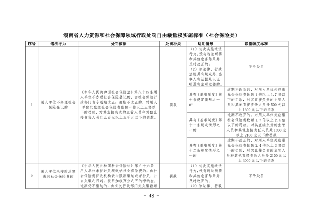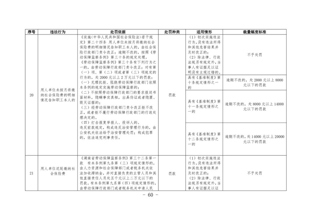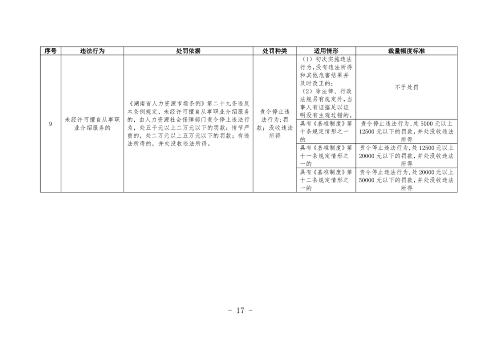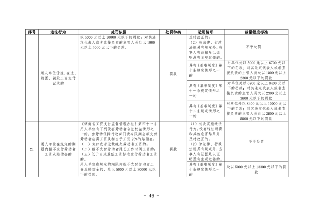 《湖南省人力資源和社會保障領域行政處罰自由裁量權基準製度》和《湖南省人力資源和社會保障領域行政處罰自由裁量權實施標準》