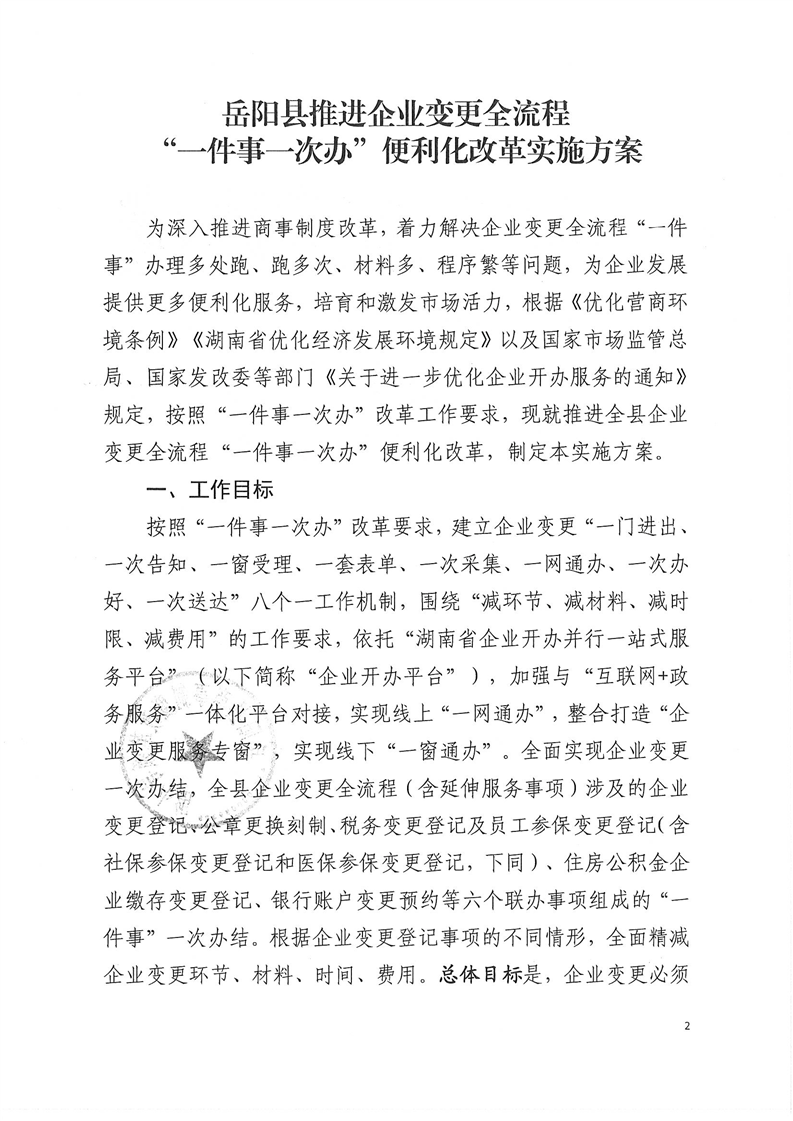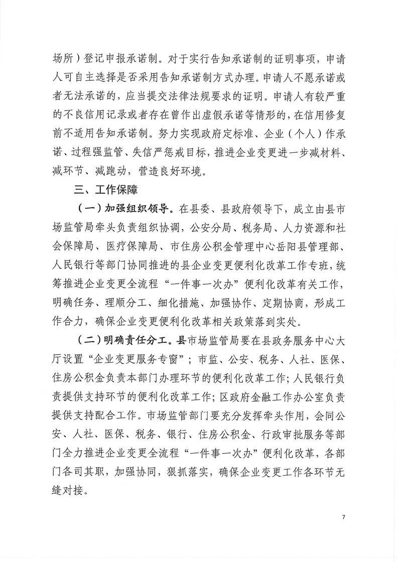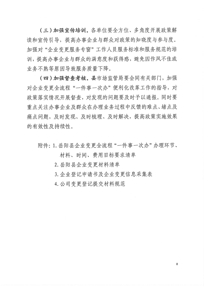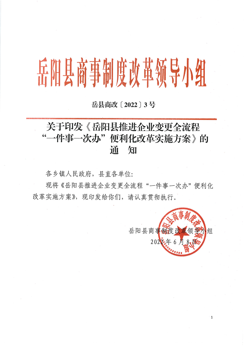 嶽陽縣市場監督管理局:關於印發《嶽陽縣推進企業變更全流程“一件事一次辦”便利化改革實施方案》的通知