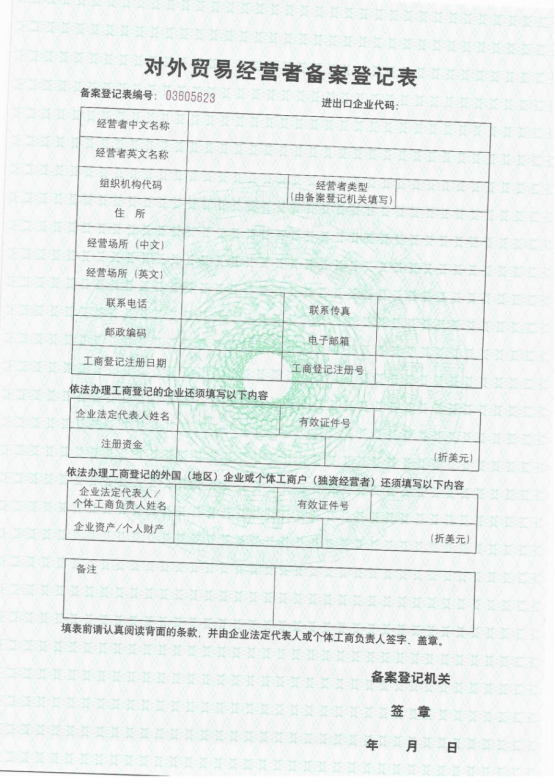 對外貿易經營者備案登記表 |