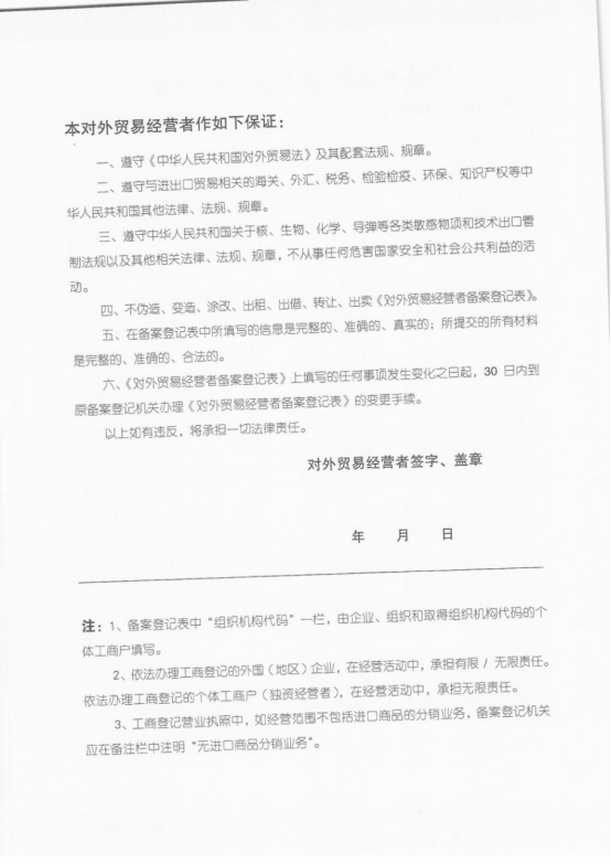 外貿經營者備案登記申請表 |