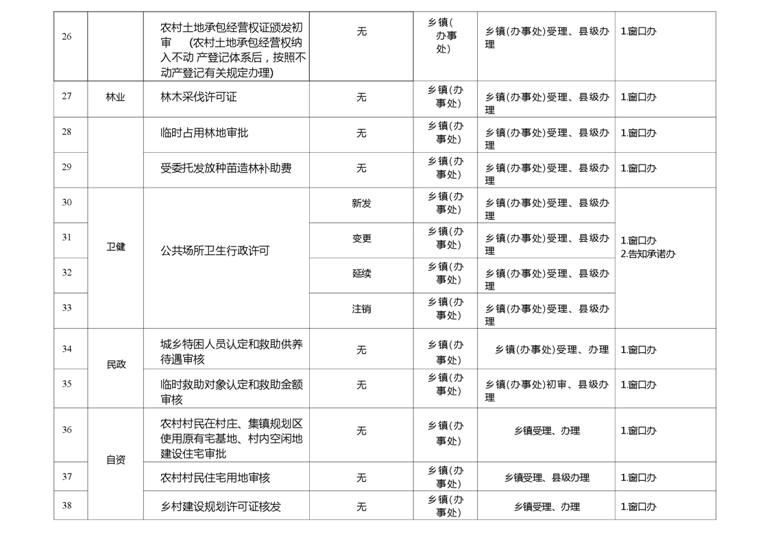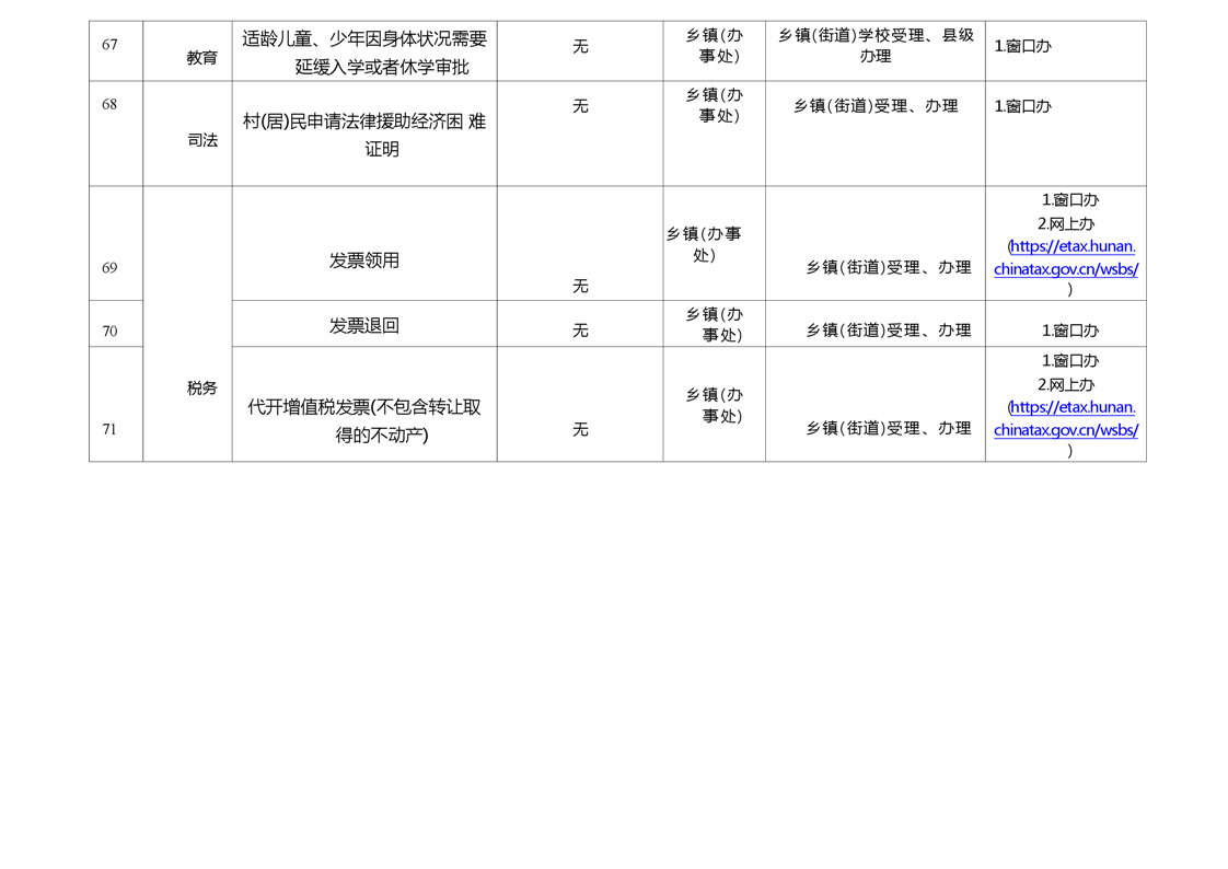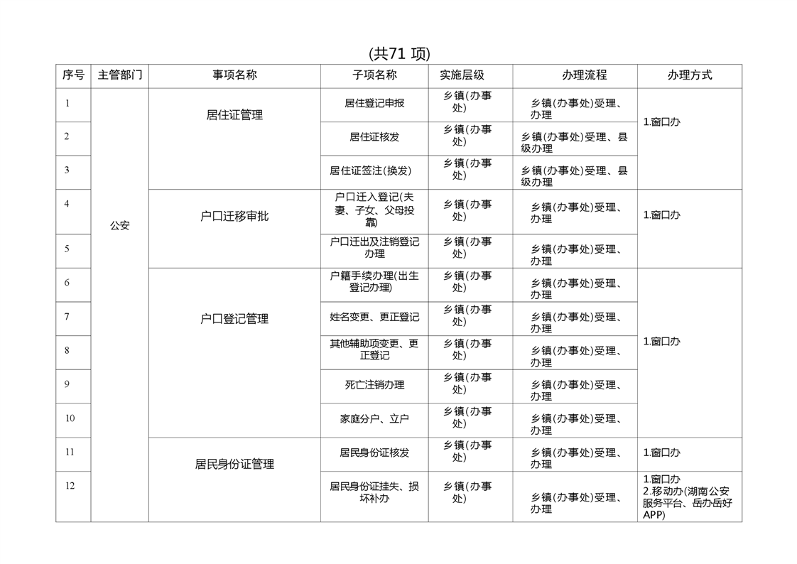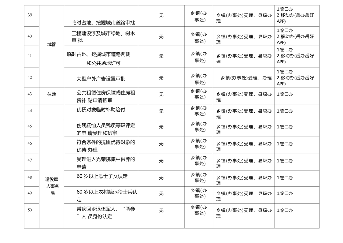 嶽陽縣鄉鎮(辦事處)政務服務暨就近辦事項清單