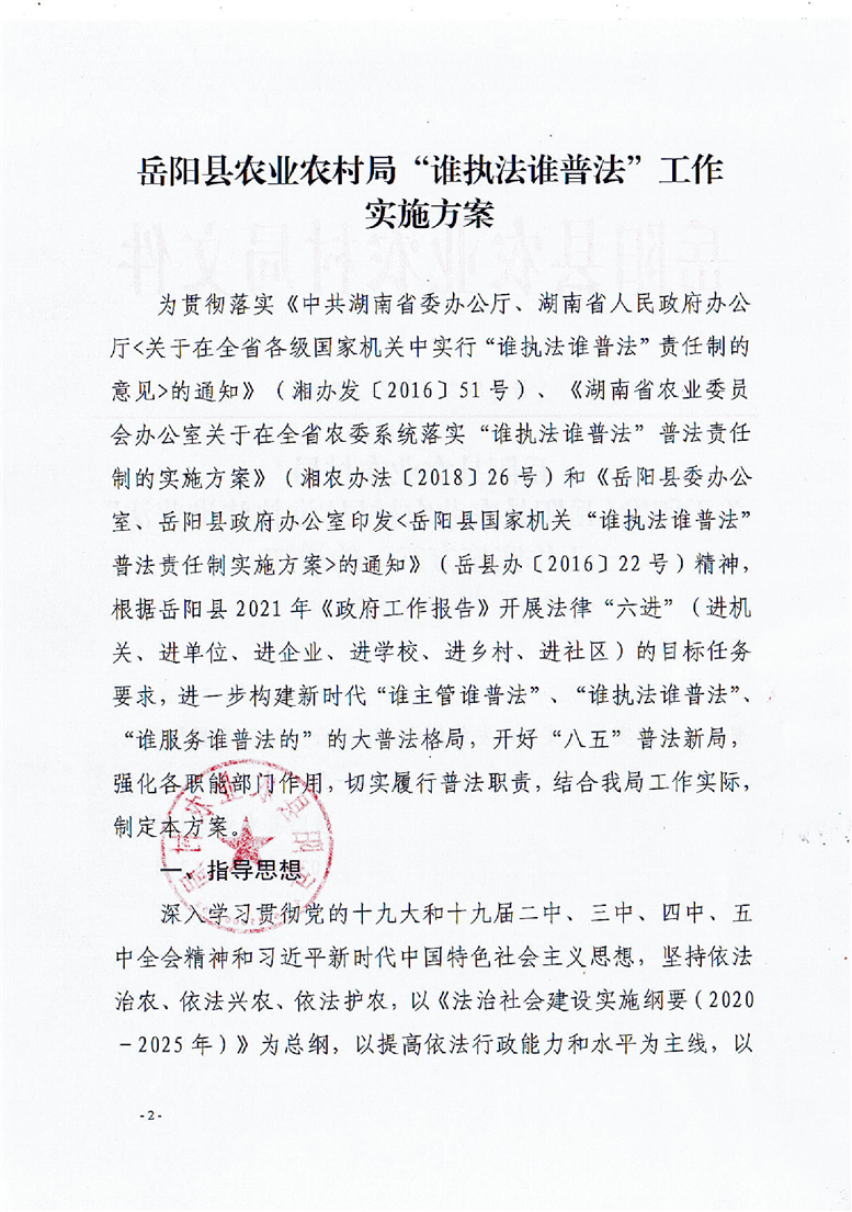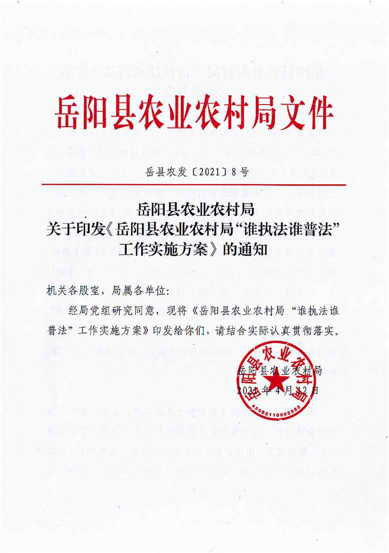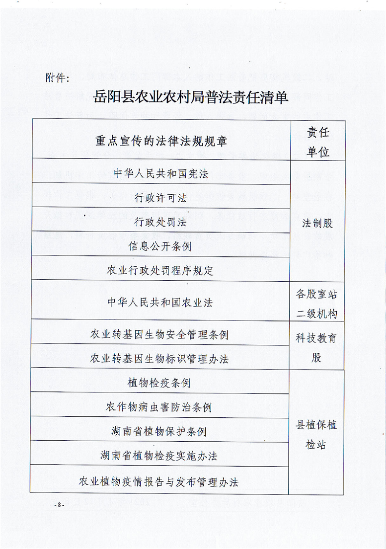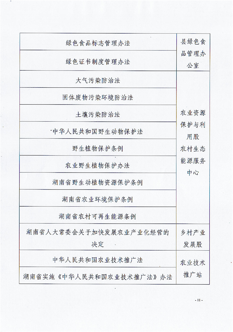 縣農業農村局2021年“誰執法誰普法”責任清單