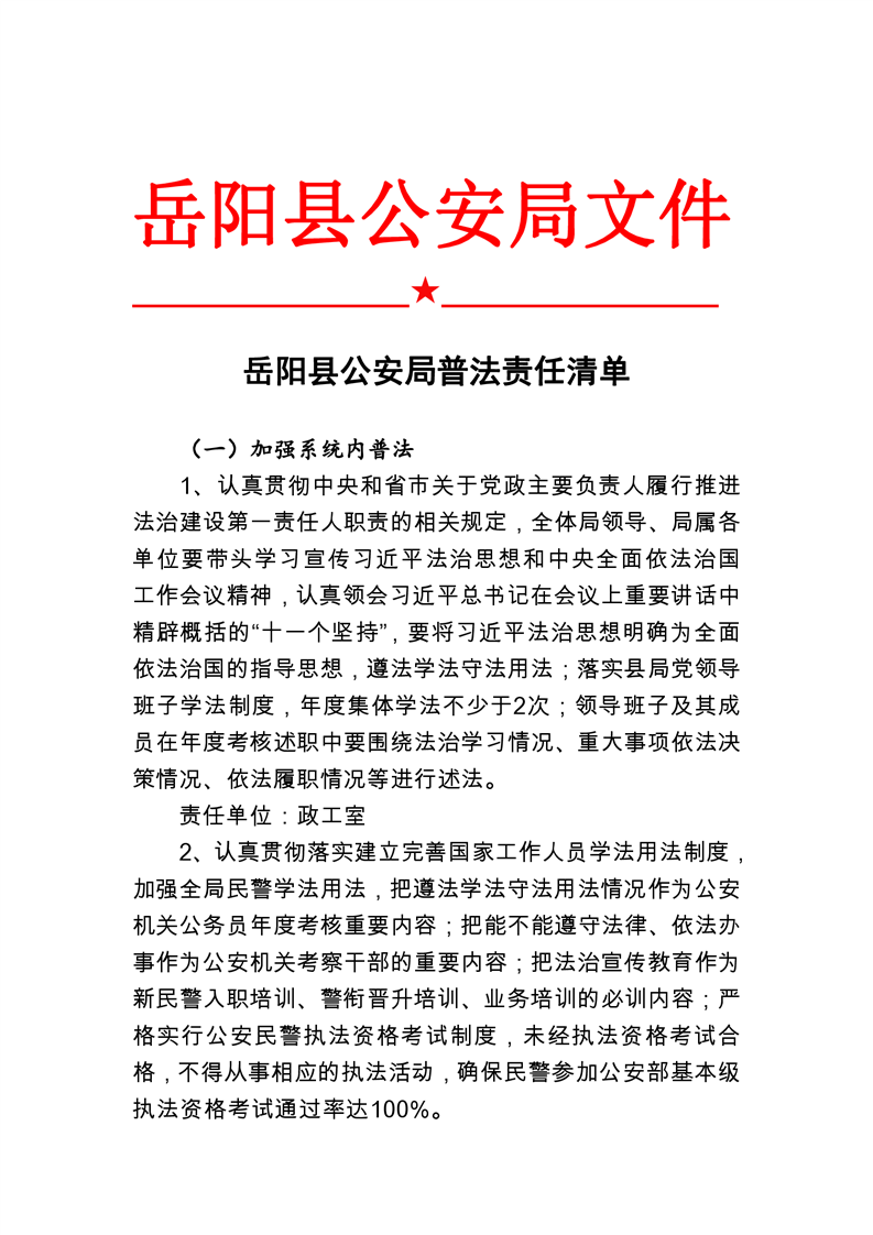 2022年嶽陽縣公安局“誰執法誰普法”責任清單