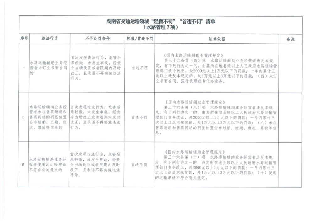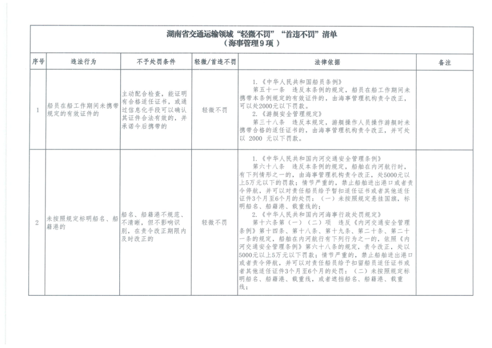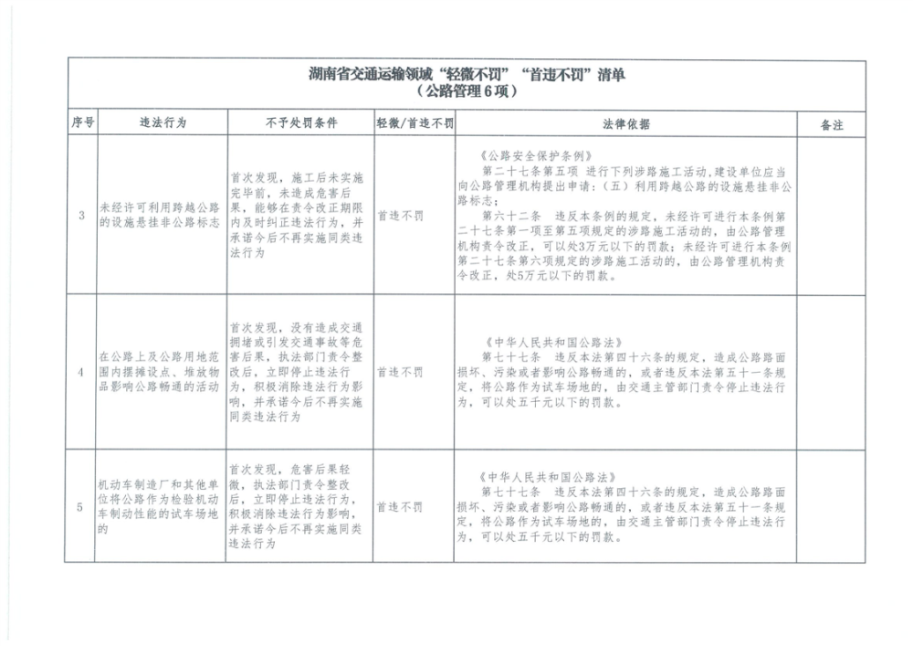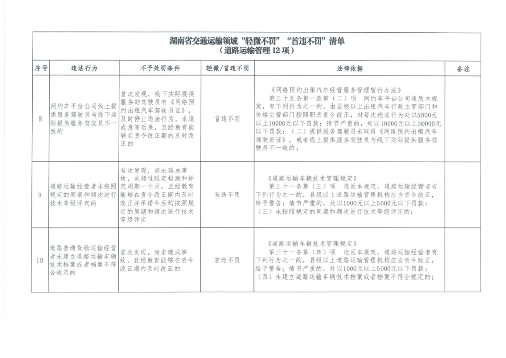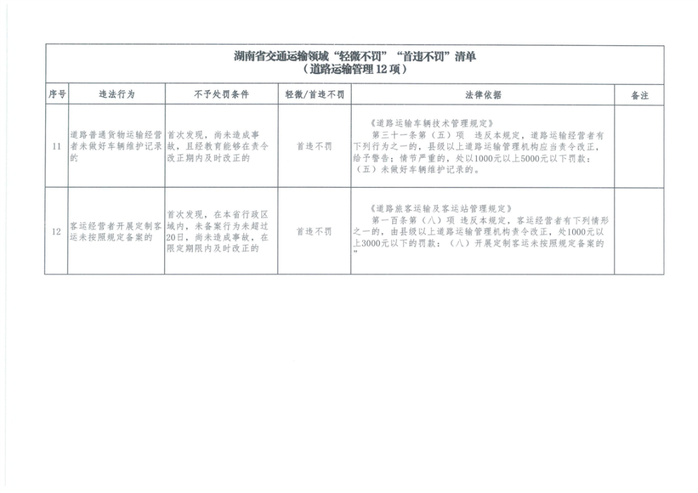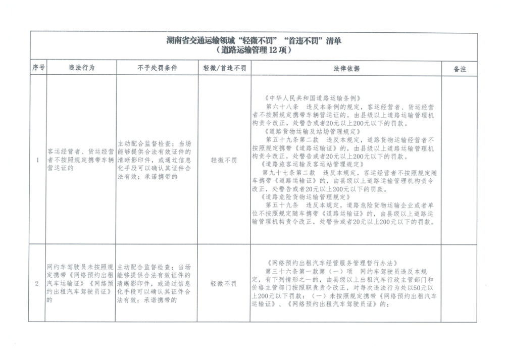 湖南省交通運輸領域“輕微不罰”“首違不罰”清單
