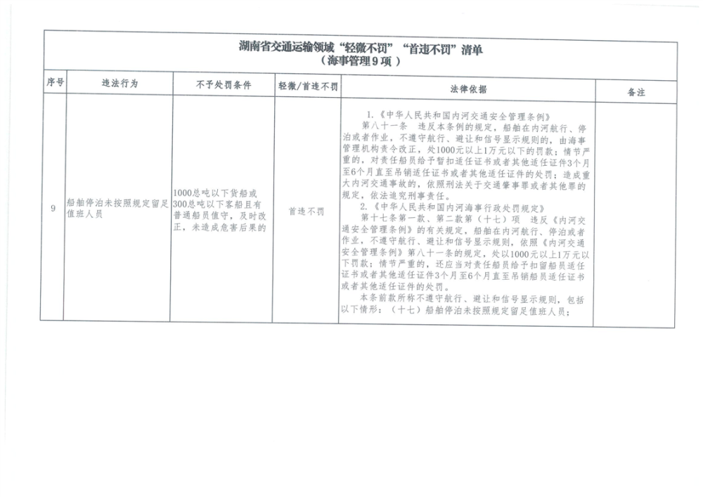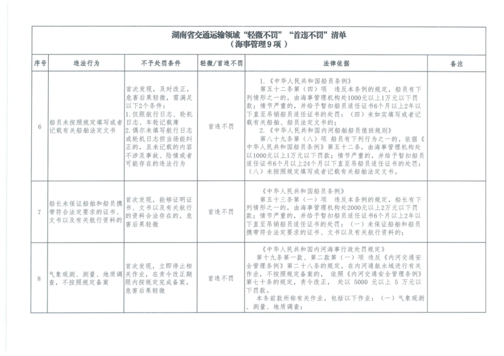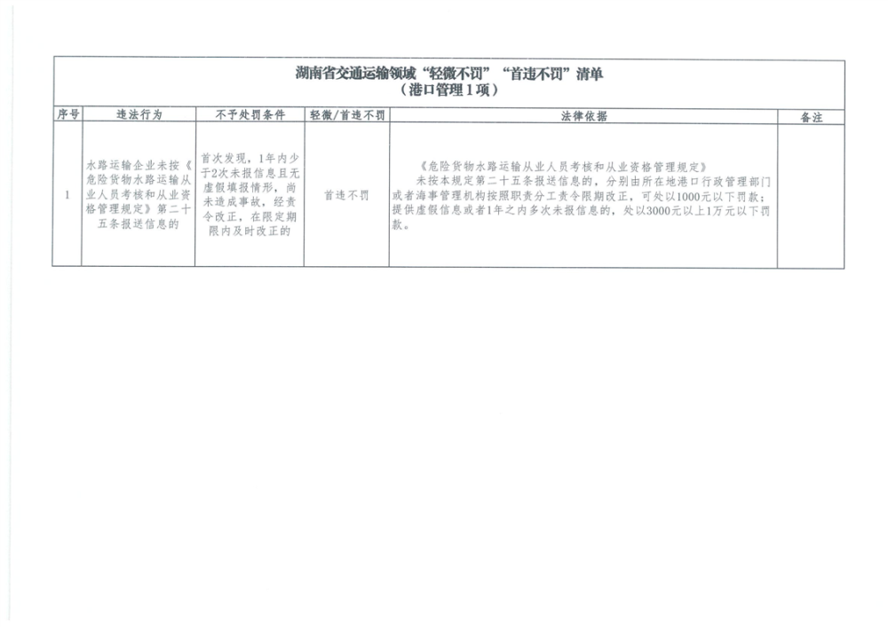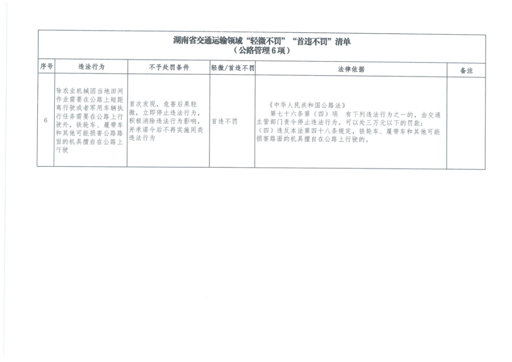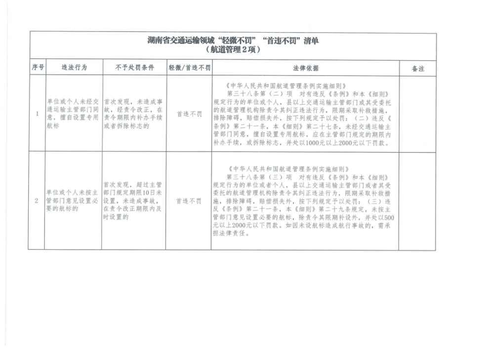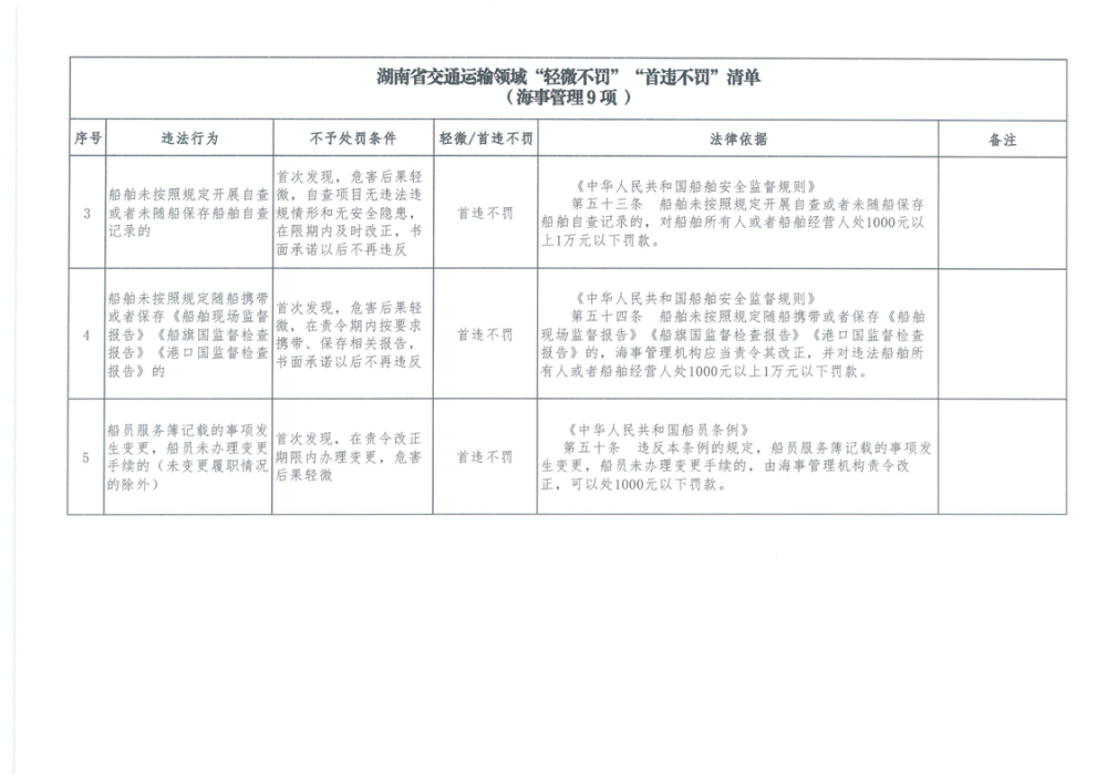 湖南省交通運輸領域“輕微不罰”“首違不罰”清單