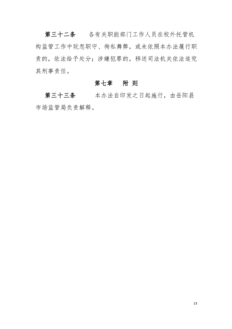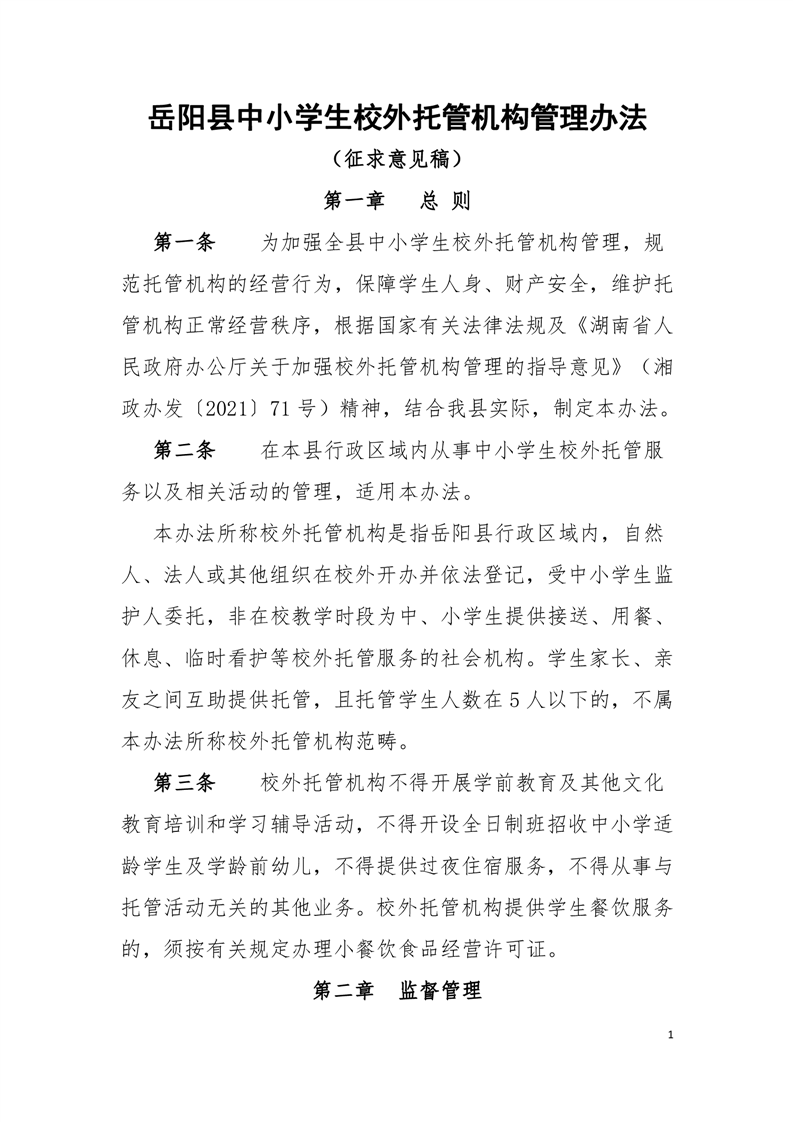 嶽陽縣中小學生校外托管機構管理辦法(征求意見稿)