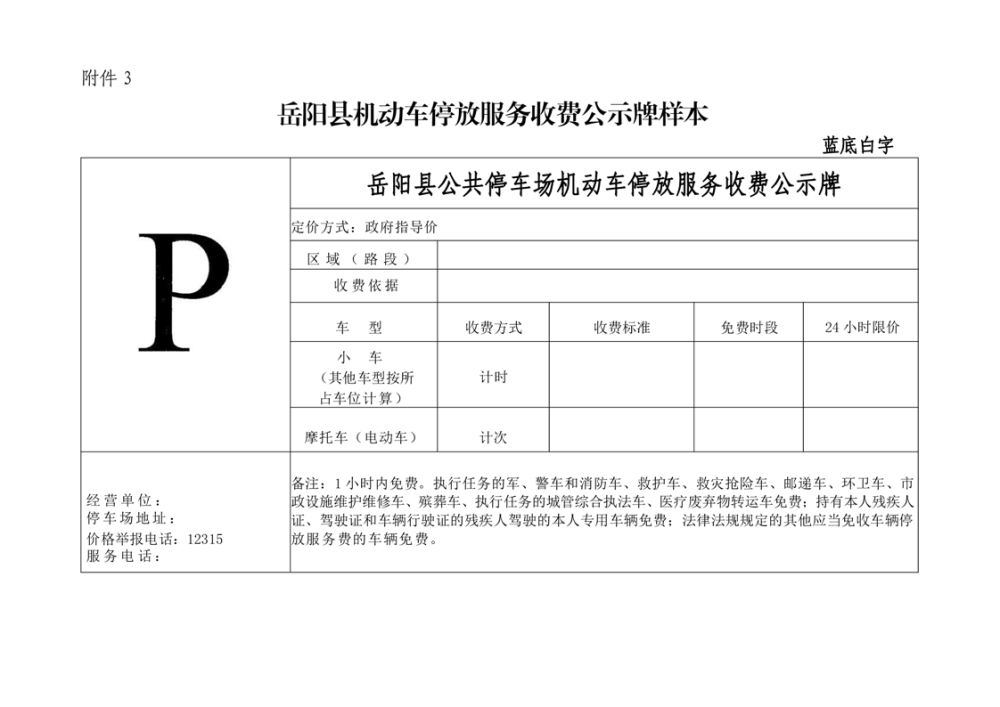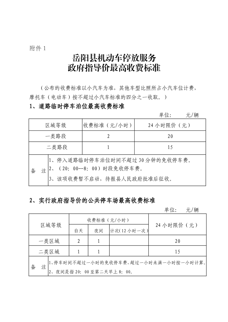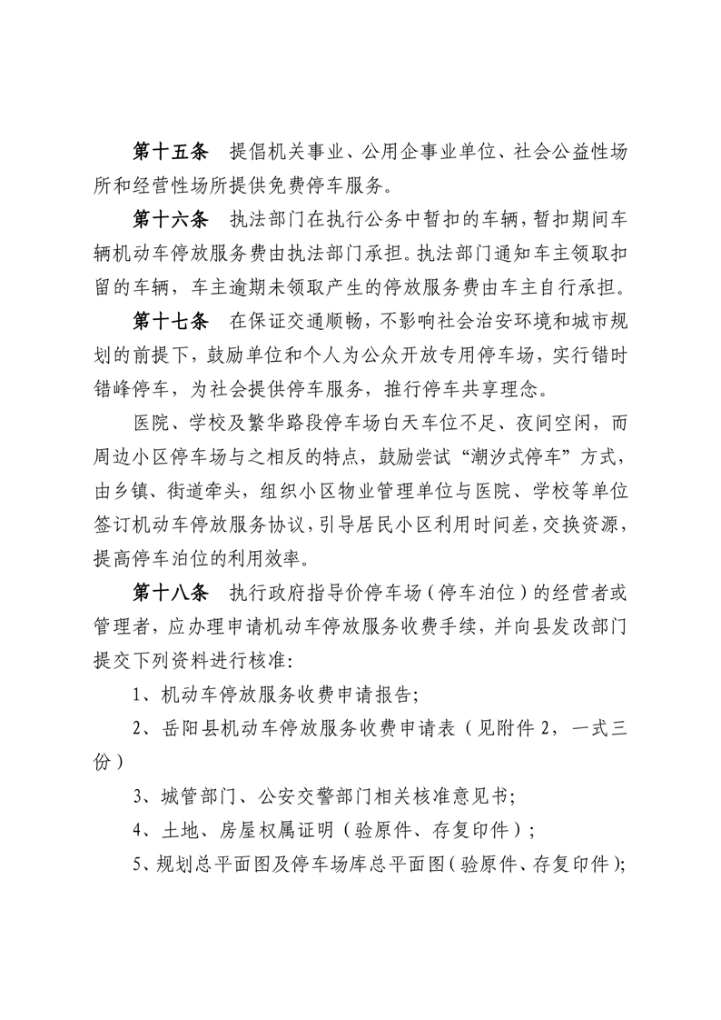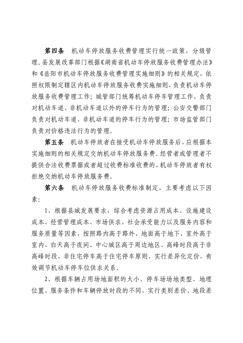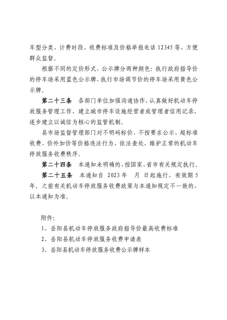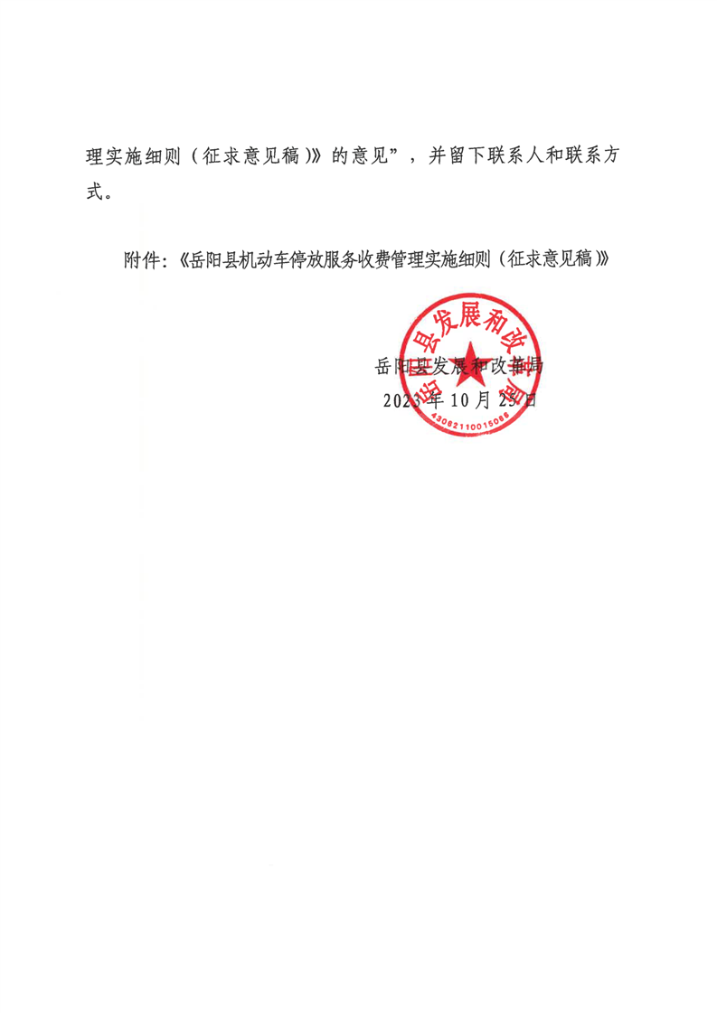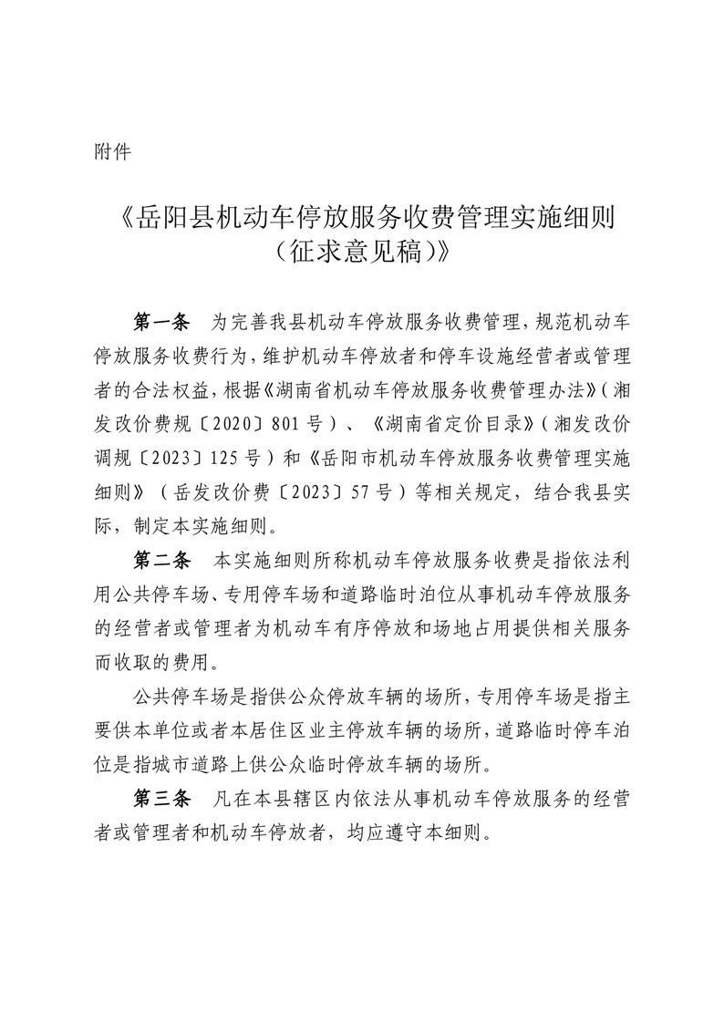 關於《嶽陽縣機動車停放服務收費管理實施細則(征求意見稿)》公開征求意見函