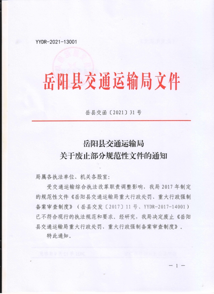 嶽陽縣交通運輸局關於廢止部分規範性文件的通知