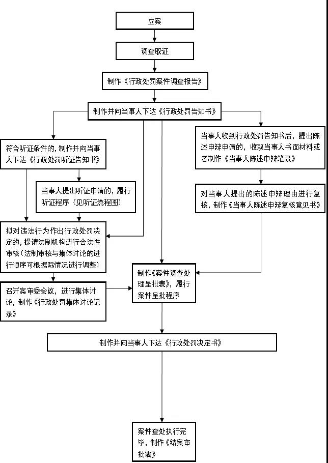 立案——調查取證——必要時進行聽證——作出處罰決定——執行。詳見附件2行政處罰流程。