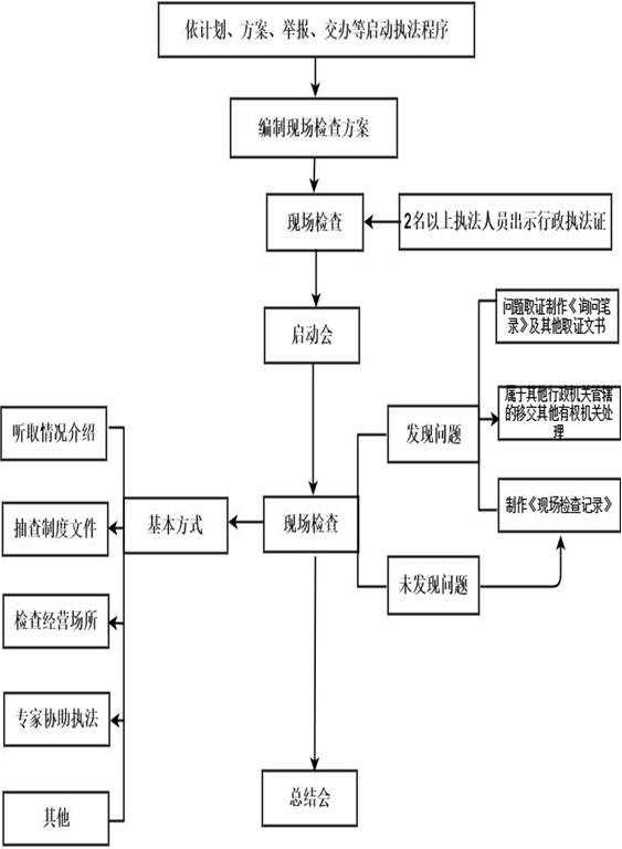 編製現場檢查方案——現場檢查——製作現場檢查記錄,詳見附件1現場檢查流程。