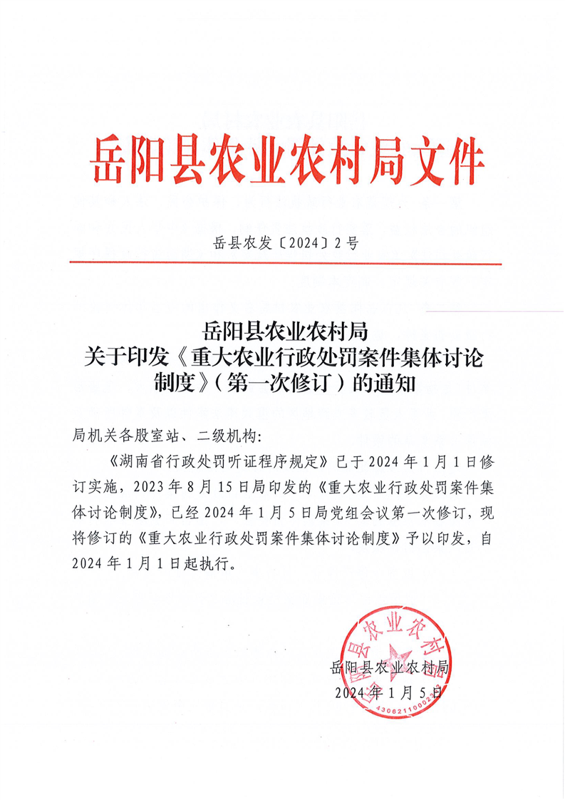 嶽縣農發〔2024〕2號—關於印發《重大農業行政處罰案件集體討論製度》(第一次修訂)的通知