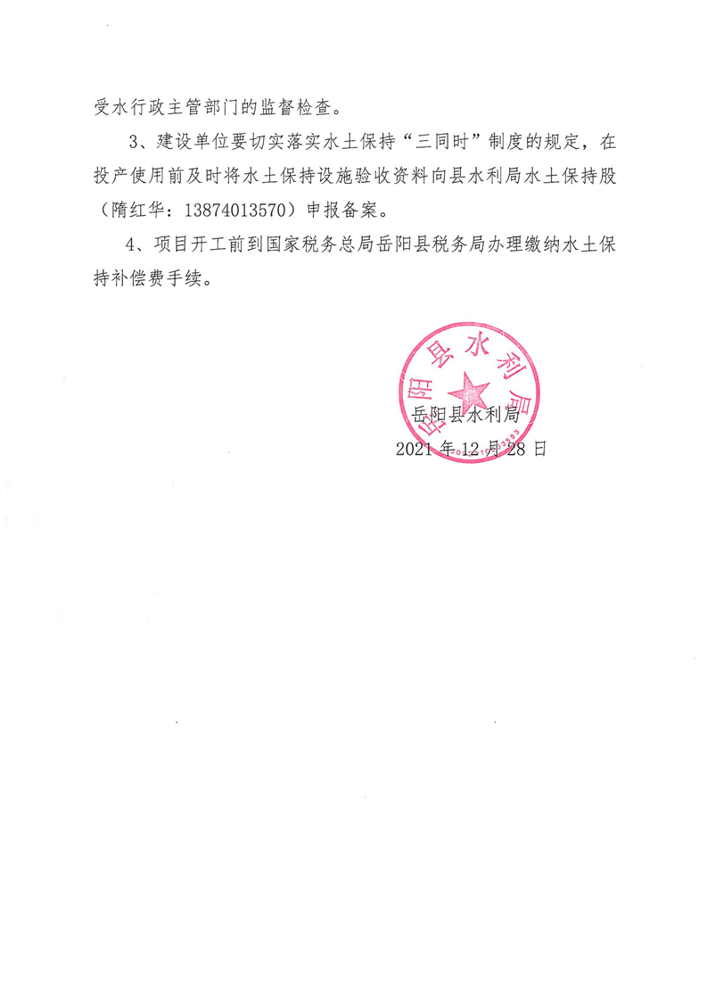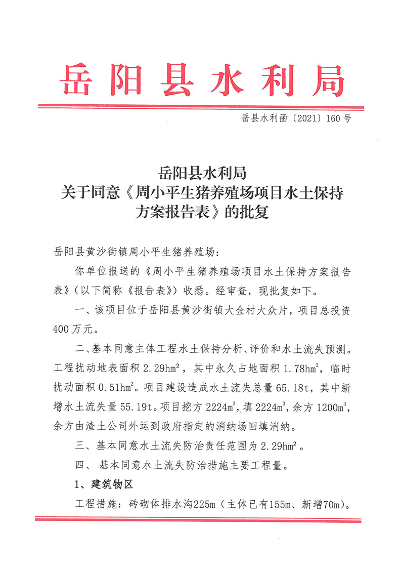 嶽陽縣水利局關於同意《周小平生豬養殖場項目水土保持方案報告表》的批複