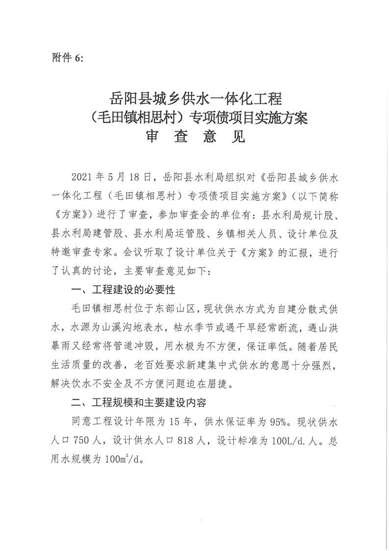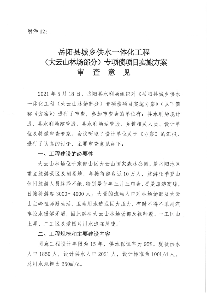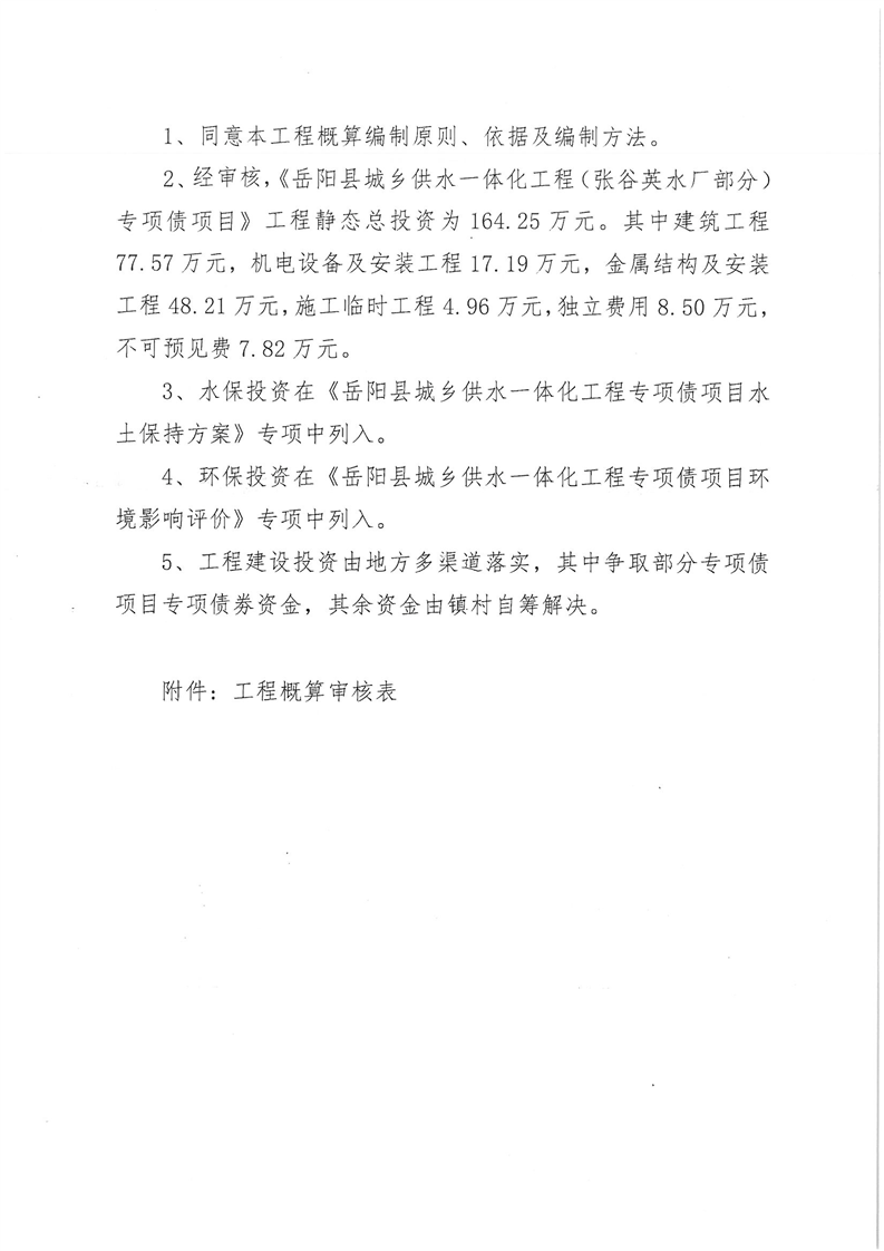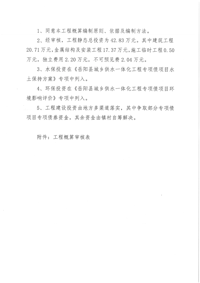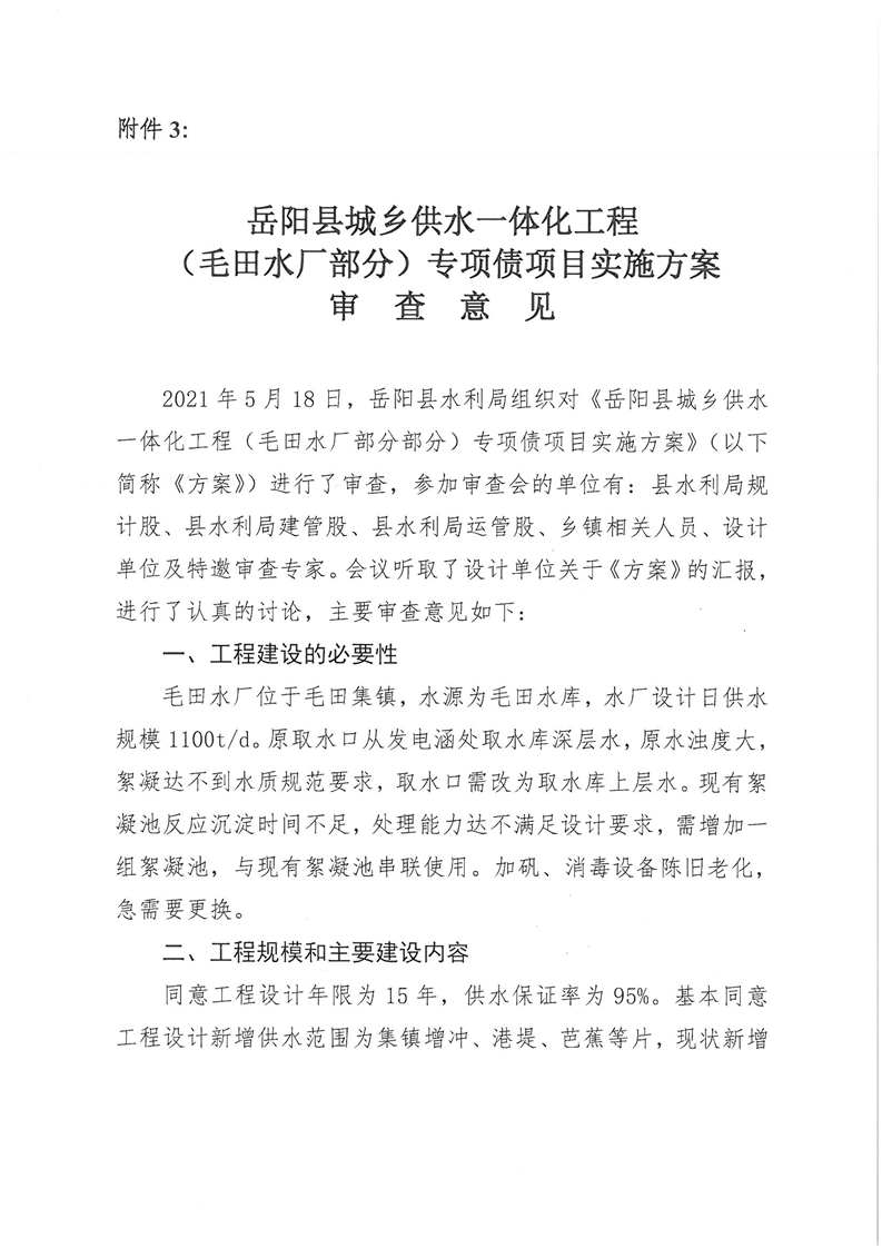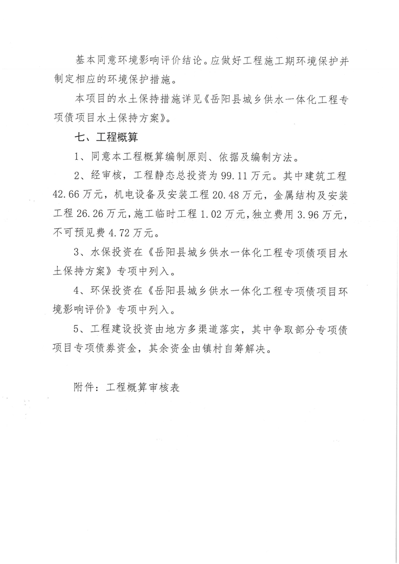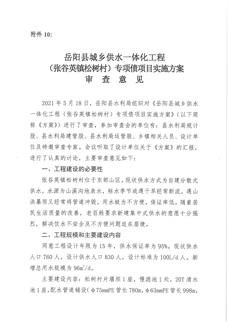 嶽陽縣水利局關於嶽陽縣城鄉供水一體化工程(月田鎮鐵山湖村灣頭片)專項債項目等12處單村工程實施方案的批複