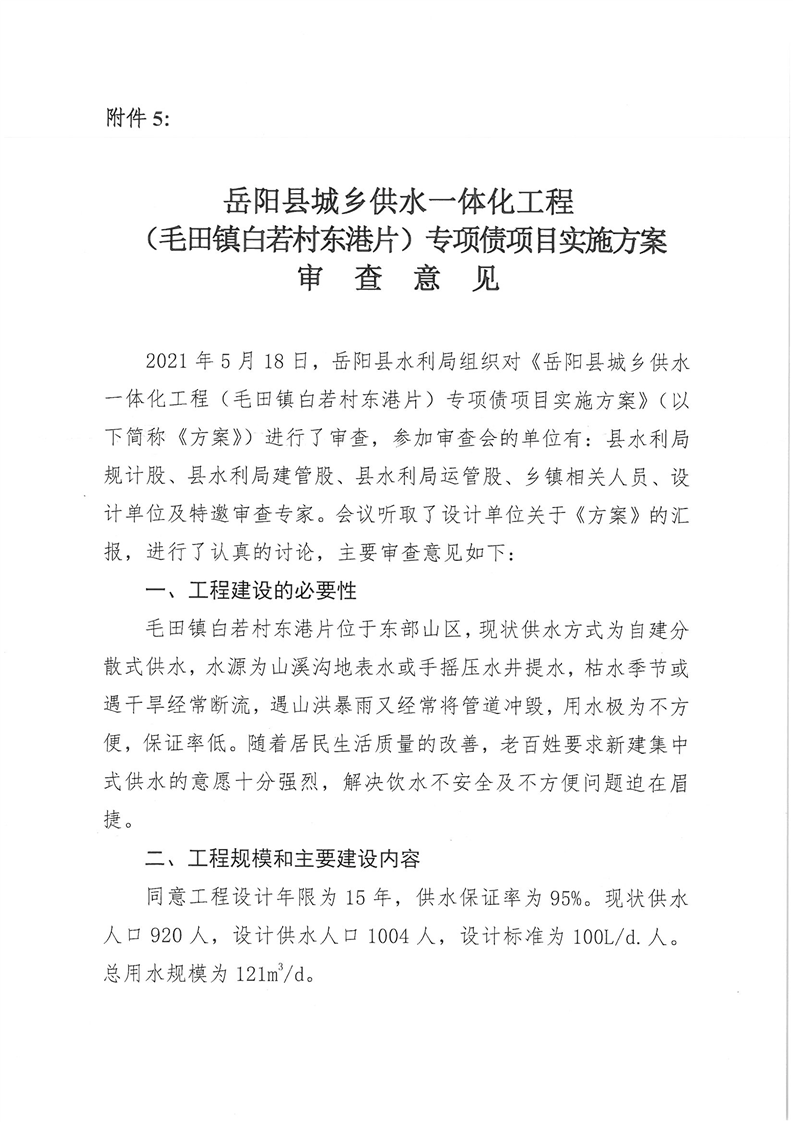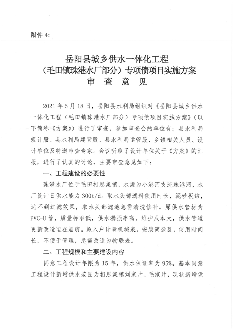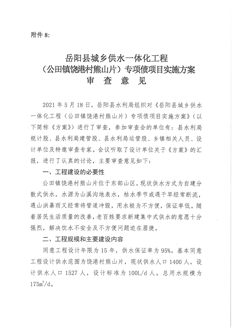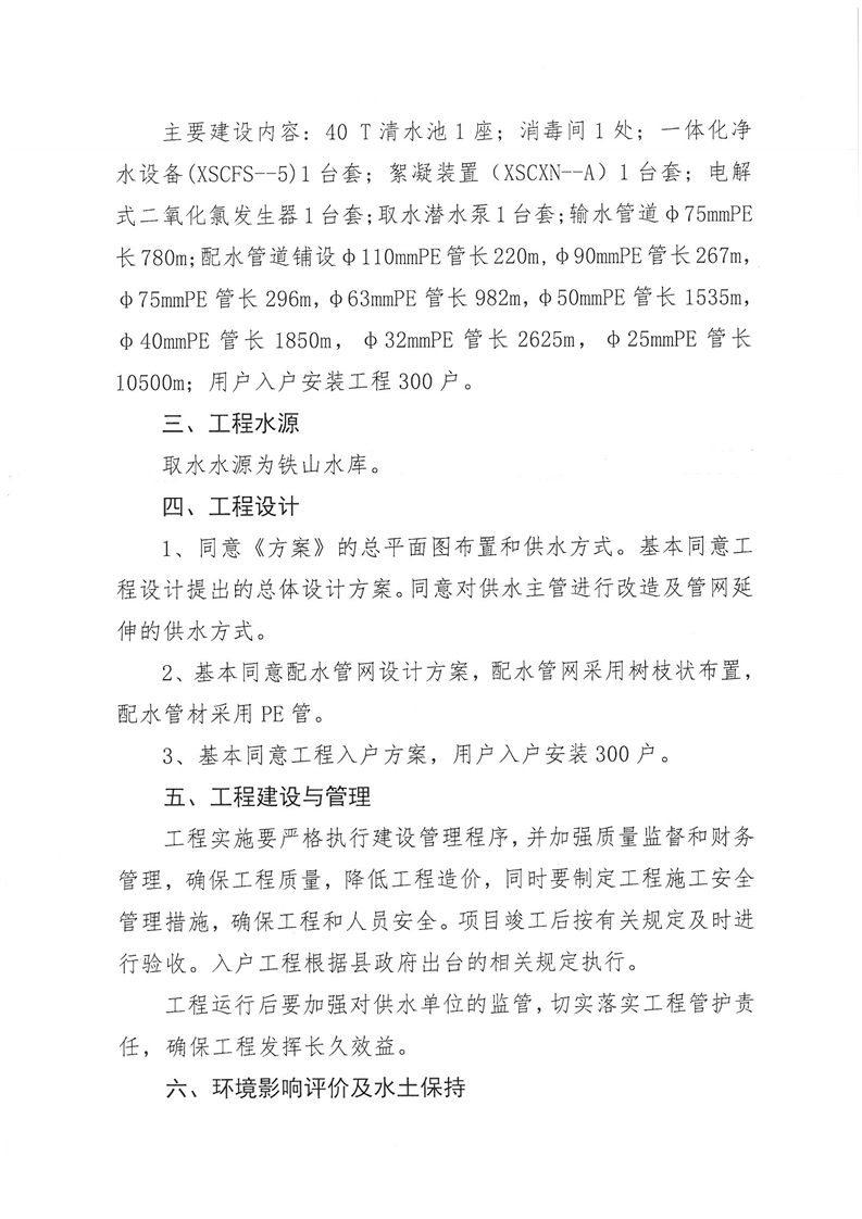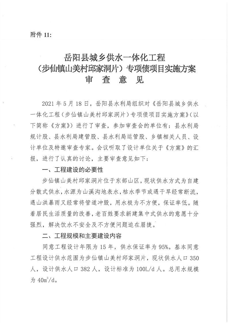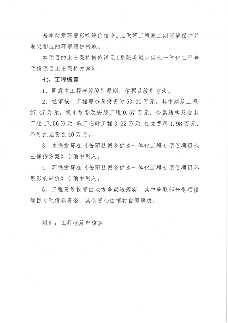 嶽陽縣水利局關於嶽陽縣城鄉供水一體化工程(月田鎮鐵山湖村灣頭片)專項債項目等12處單村工程實施方案的批複