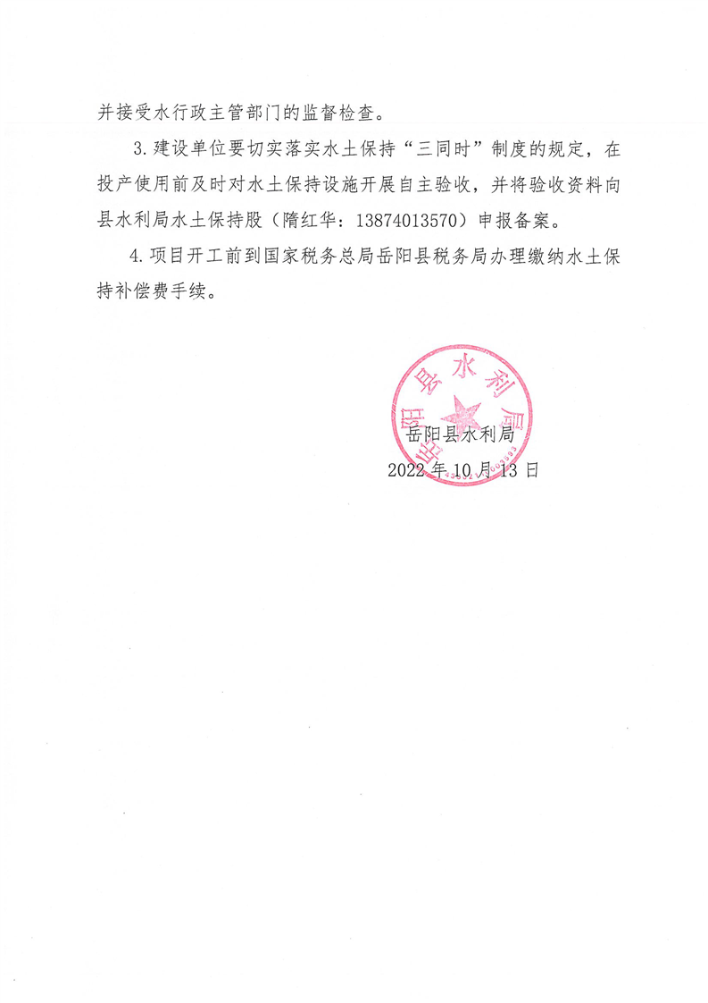 嶽陽縣水利局關於同意《飛雲牲豬養殖場建設項目水土保持方案報告表》的批複