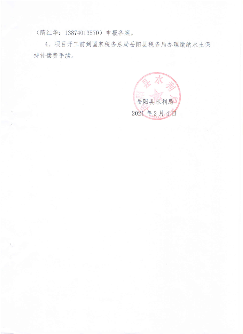 嶽陽縣水利局關於同意《華兵牲豬養殖場建設項目水土保持方案報告表》的批複