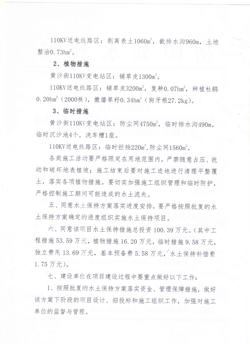 嶽陽縣水利局關於同意《湖南嶽陽嶽陽縣黃沙街110KV輸變電工程水土保持方案報告表》的批複