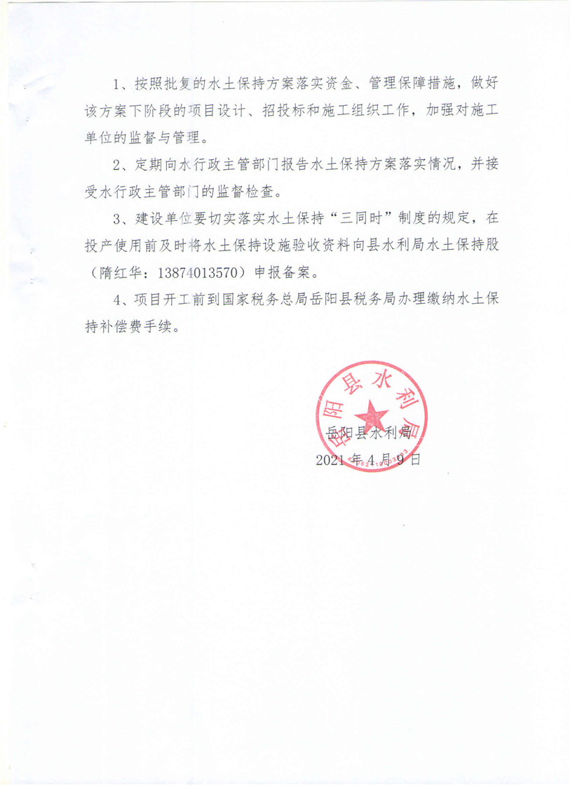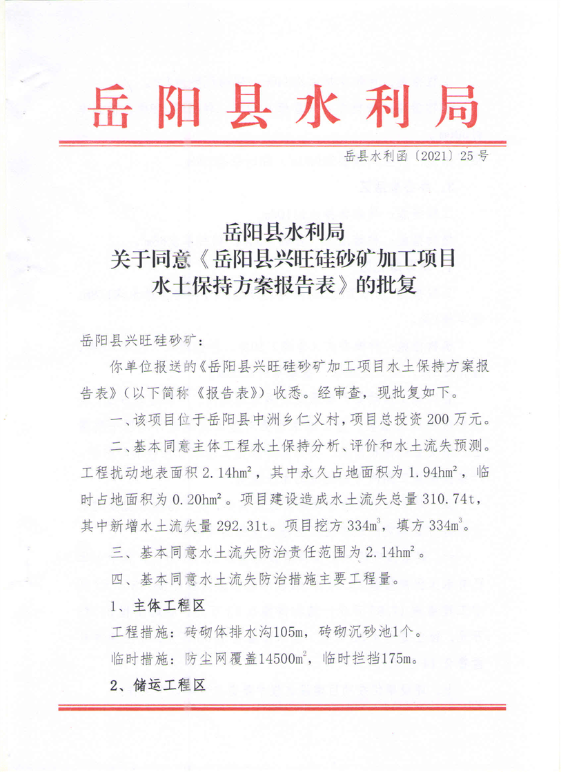 嶽陽縣水利局關於同意《嶽陽縣興旺矽砂礦加工項目水土保持方案報告表》的批複