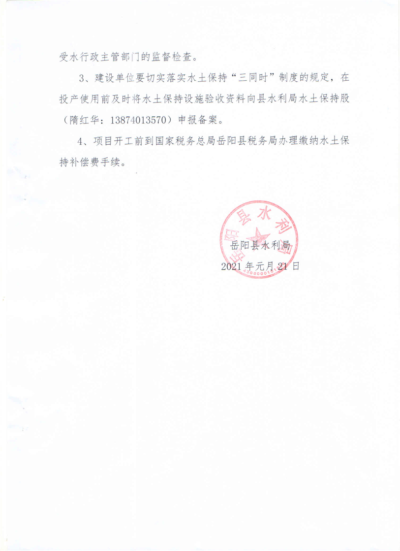嶽陽縣水利局關於同意《嶽陽縣公田興旺長石粉廠年加工長石原礦10000噸項目水土保持方案報告表》的批複