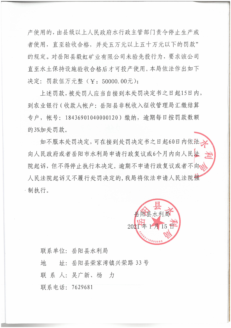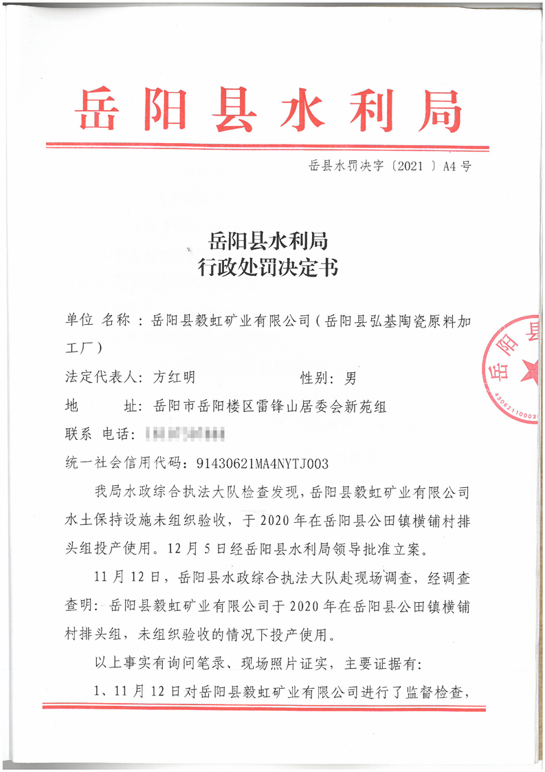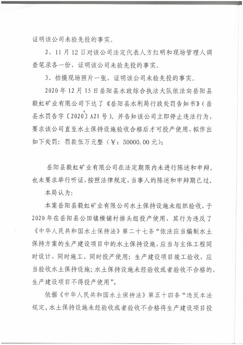 嶽陽縣毅虹礦業有限公司在嶽陽縣公田鎮橫鋪村排頭組水土流失案