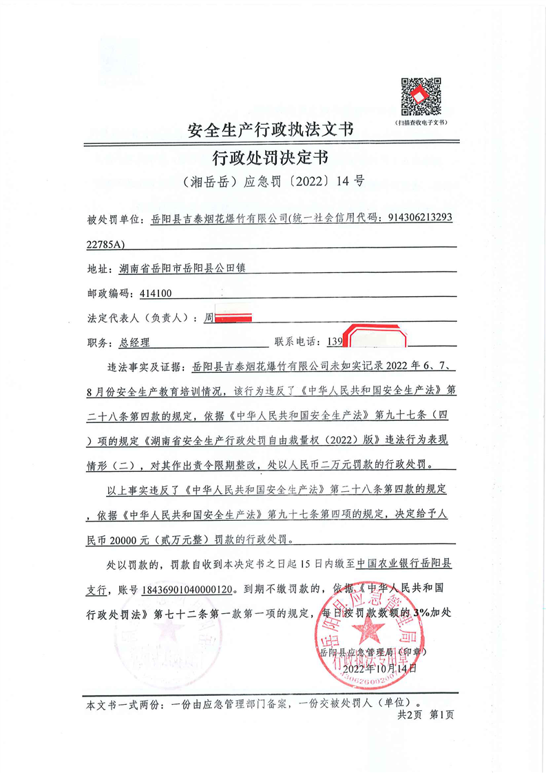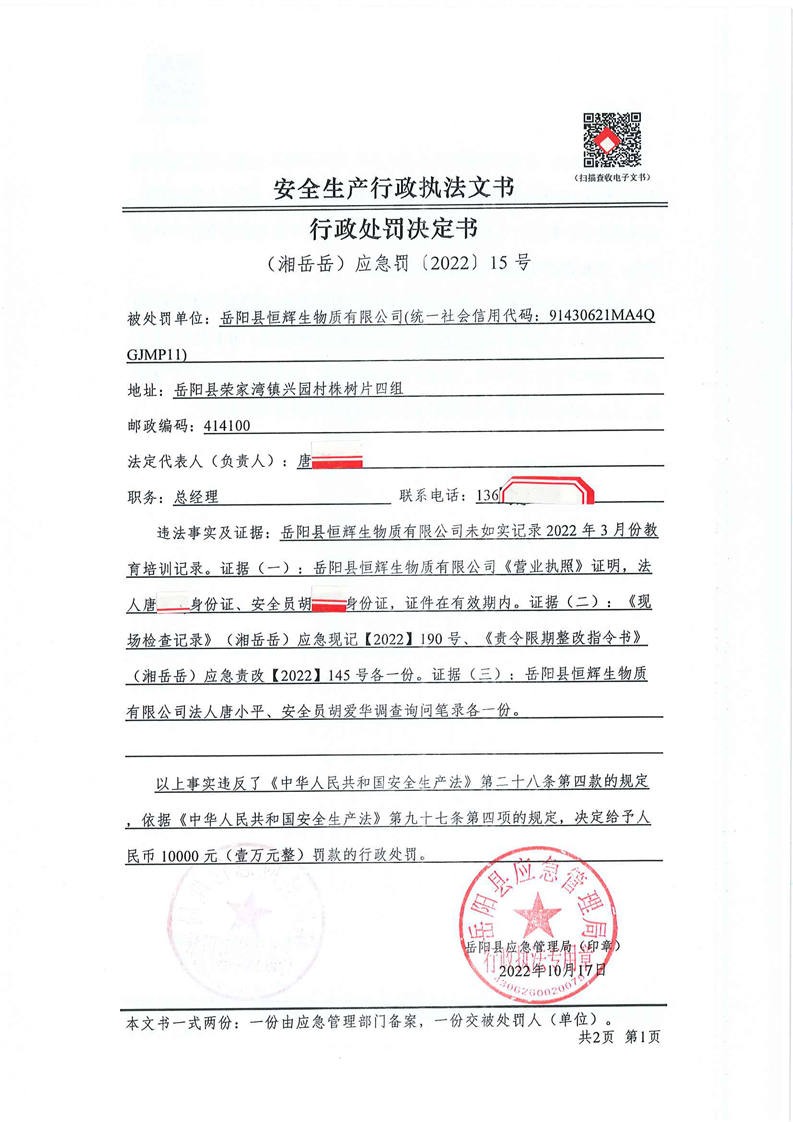 嶽陽縣應急管理局:安全生產行政處罰決定公示(10月第一批)