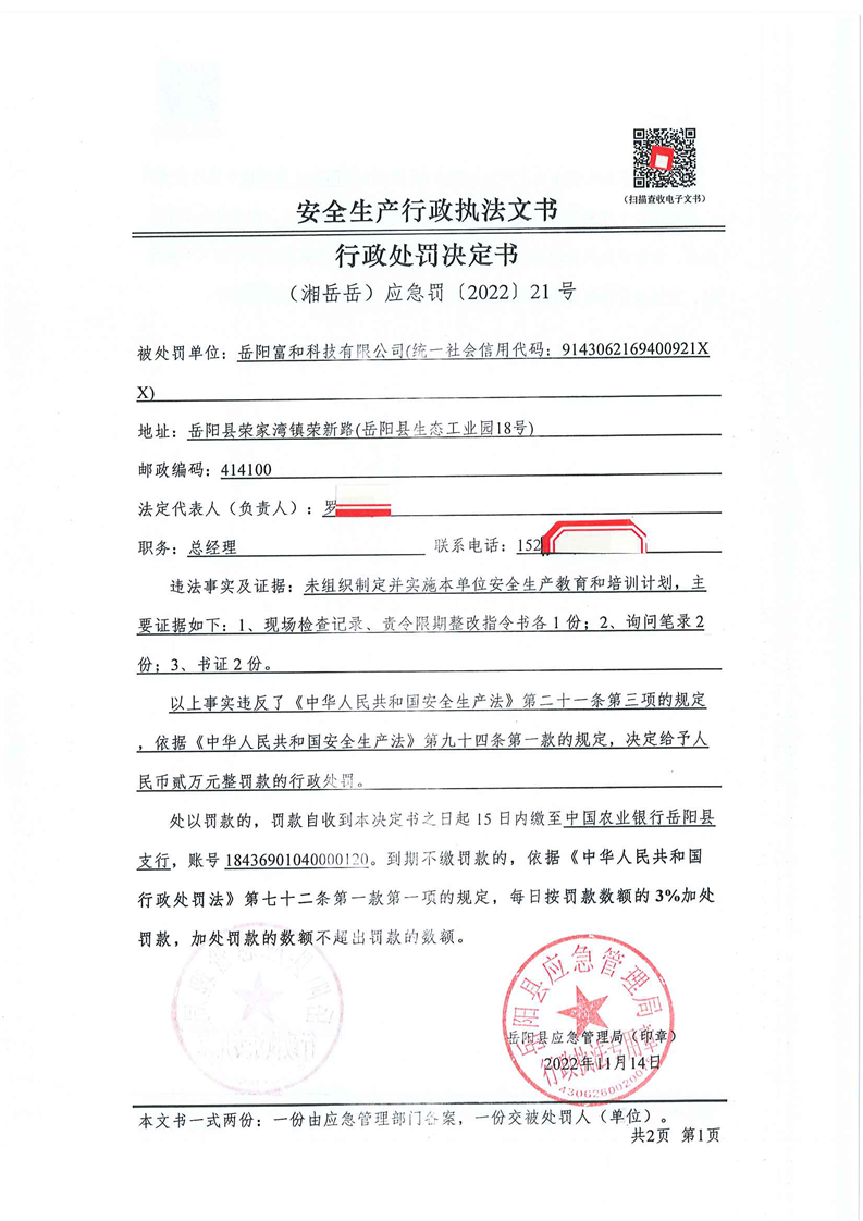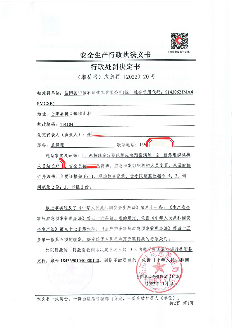 嶽陽縣應急管理局:安全生產行政處罰決定公示(11月第二批)