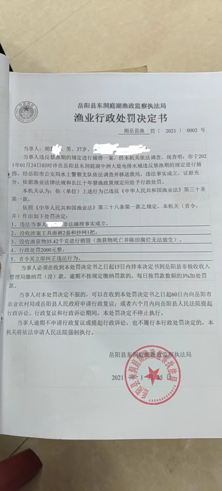 胡某處罰決定書