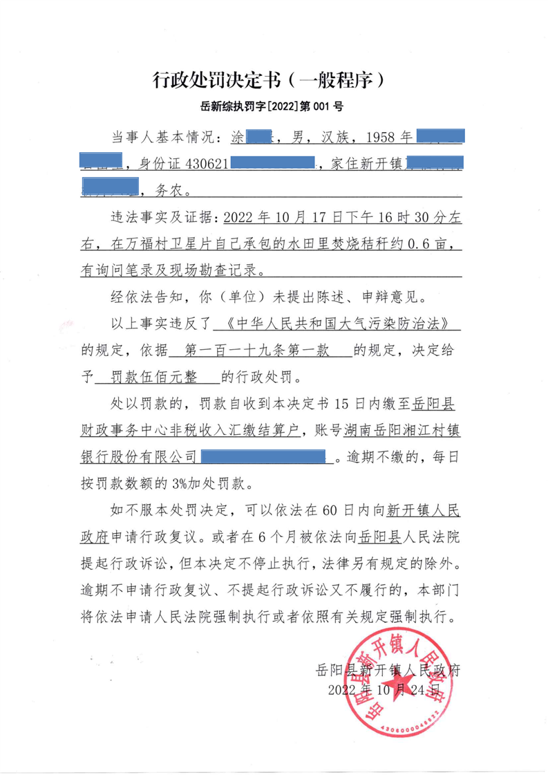 新開鎮行政處罰決議書