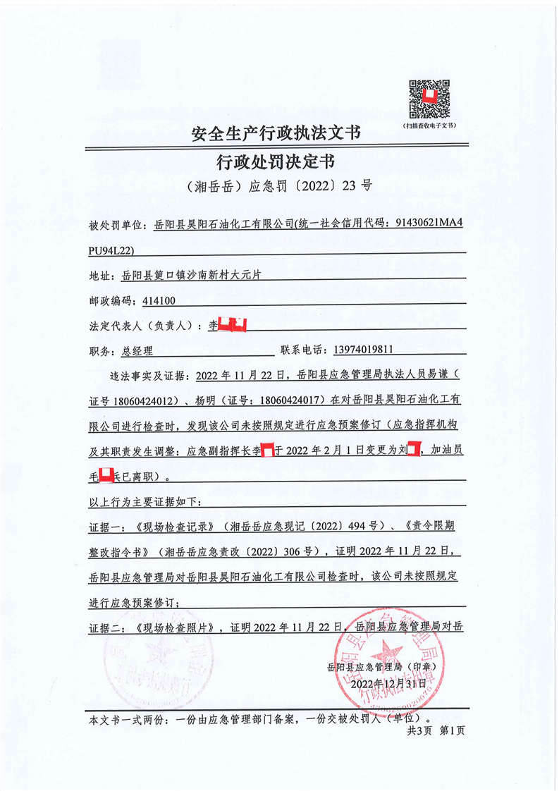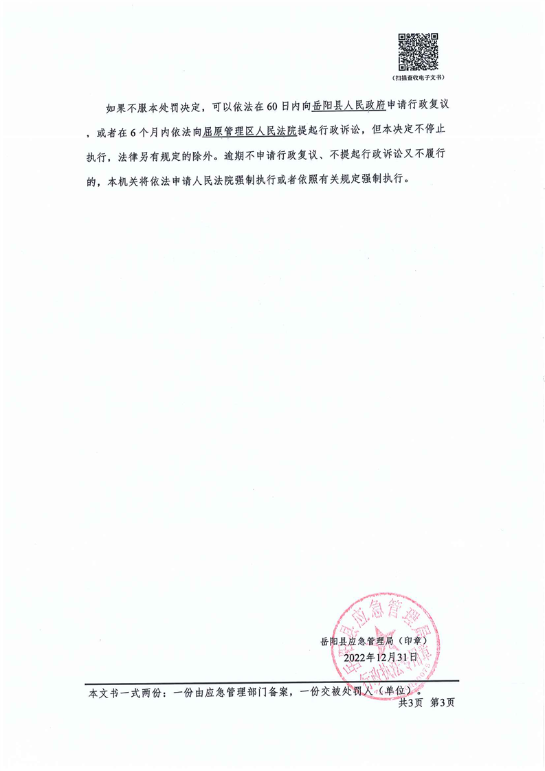 嶽陽縣應急管理局:安全生產行政處罰決定公示