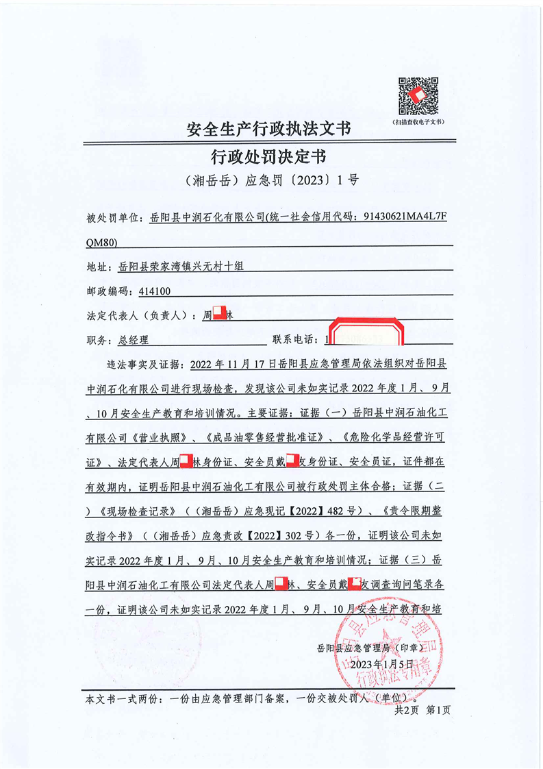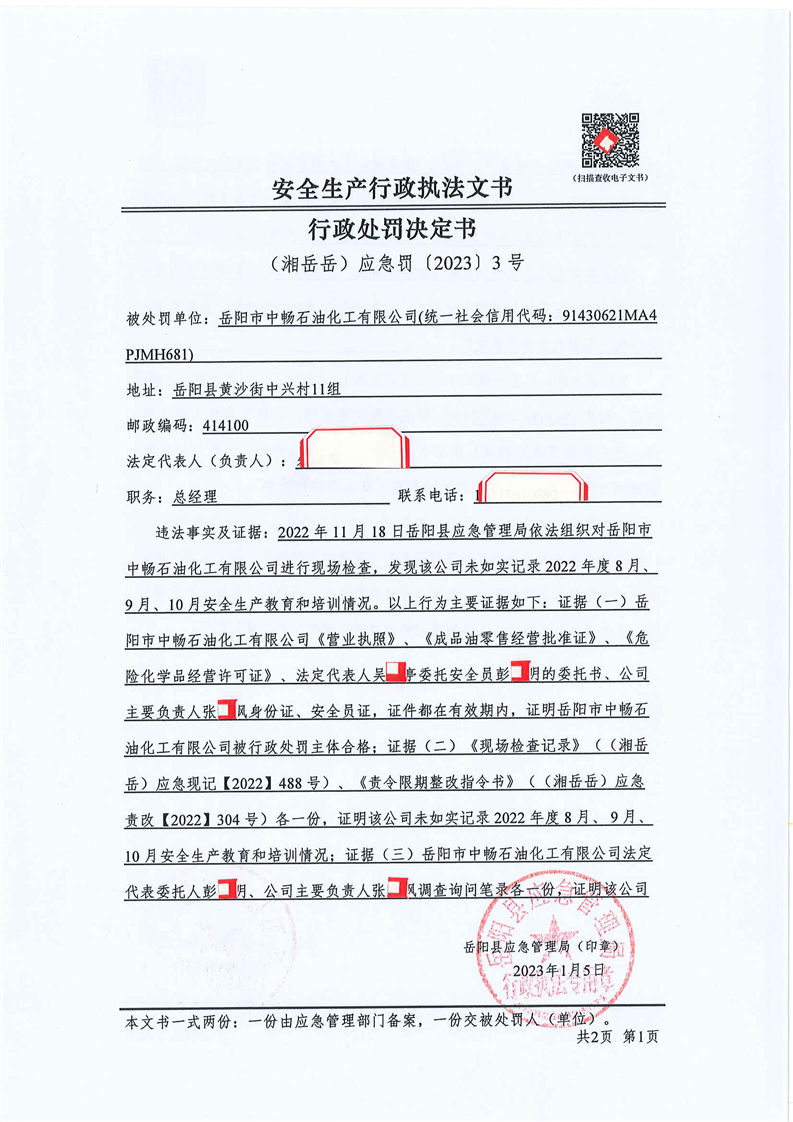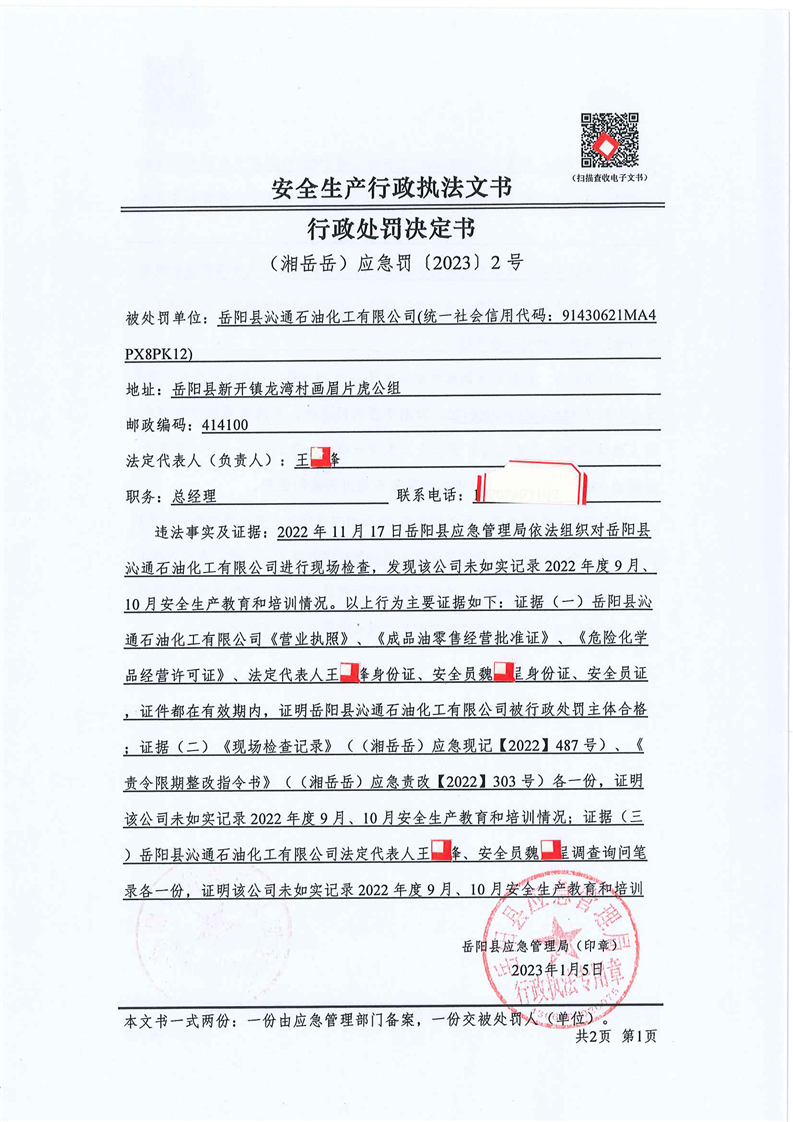 嶽陽縣應急管理局:安全生產行政處罰公示(2023年1月)