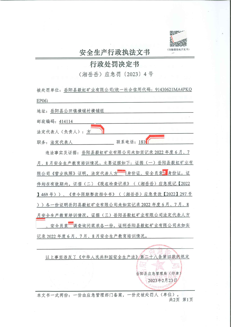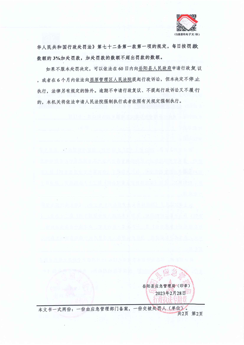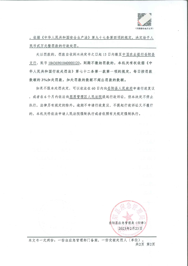 嶽陽縣應急管理局:安全生產行政處罰公示(2023年2月)
