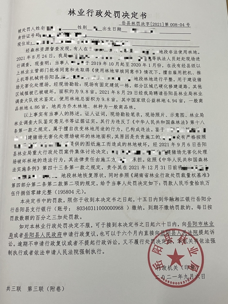 嶽陽縣林業局行政處罰決定書13