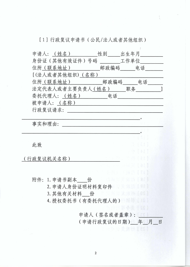 行政複議申請書格式樣本