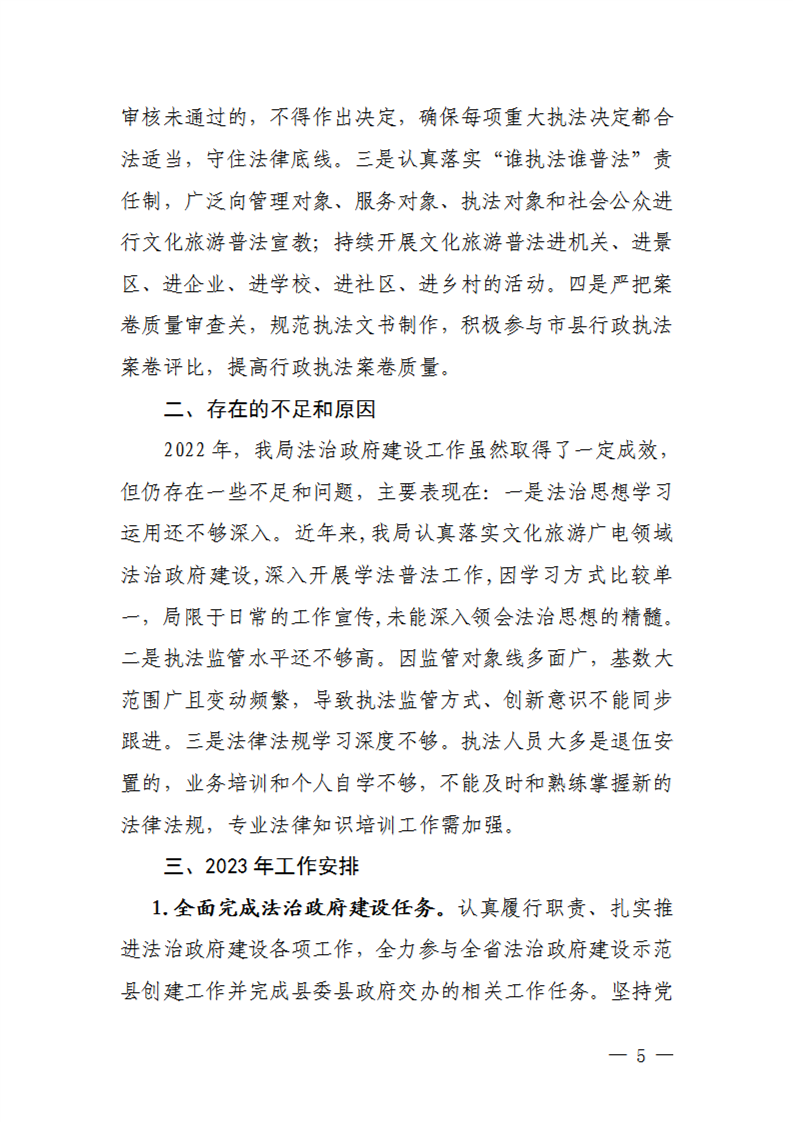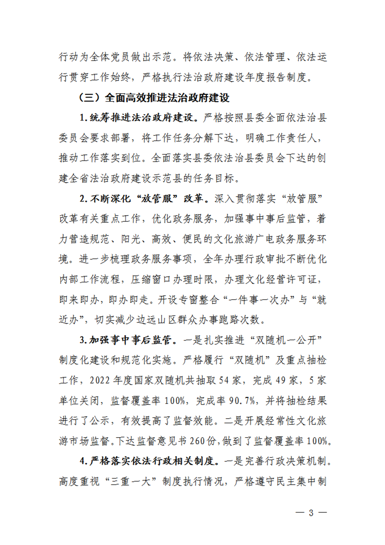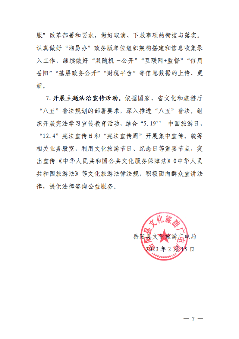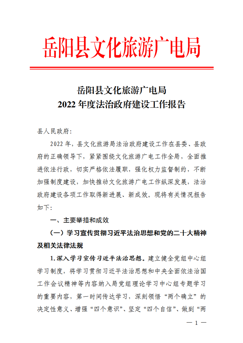 嶽陽縣文化旅遊廣電局2022年度法治政府建設工作報告
