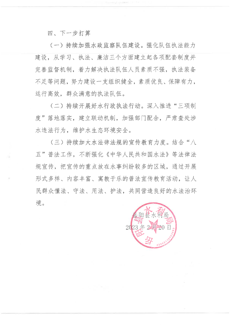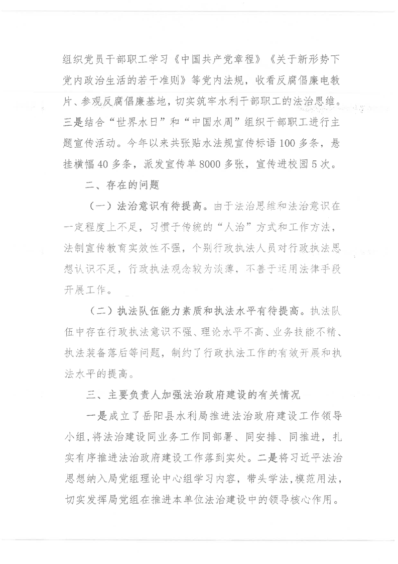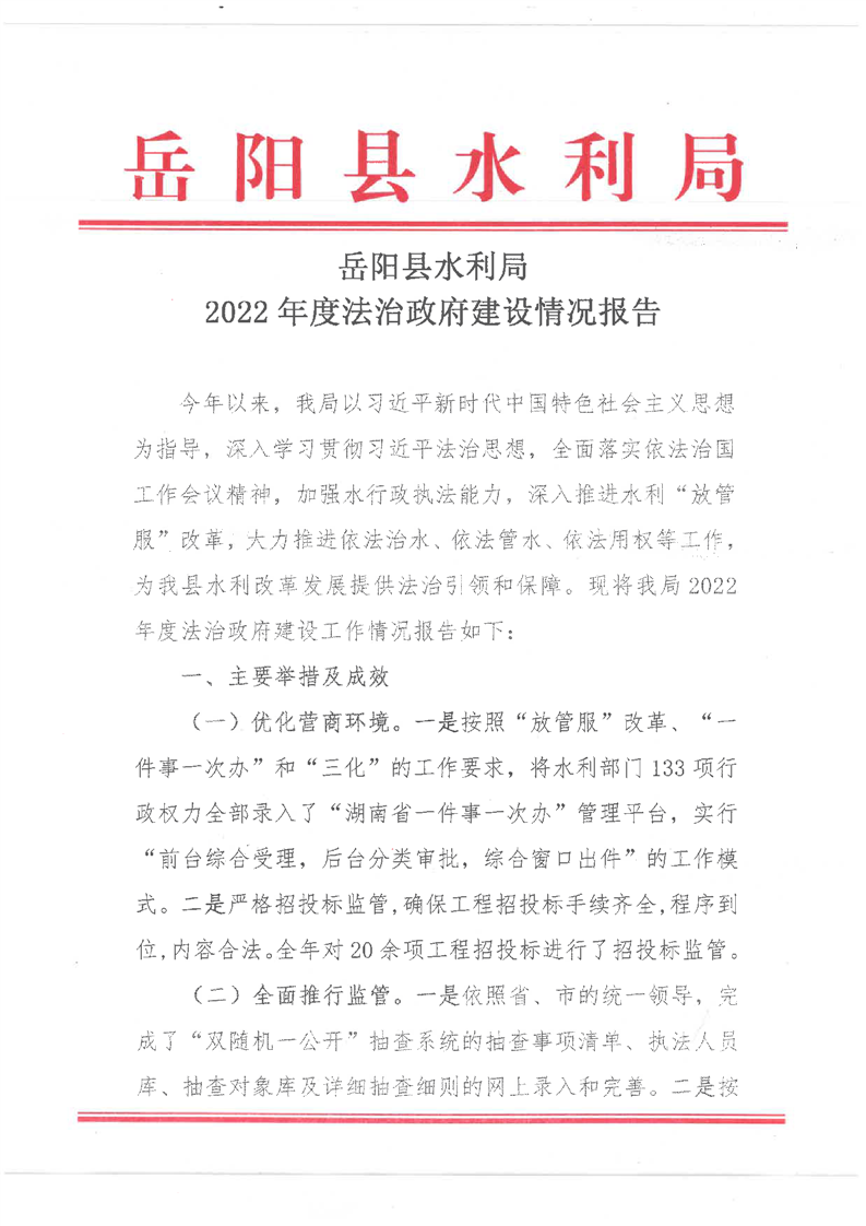 嶽陽縣水利局2022年度法治政府建設情況報告(正稿)