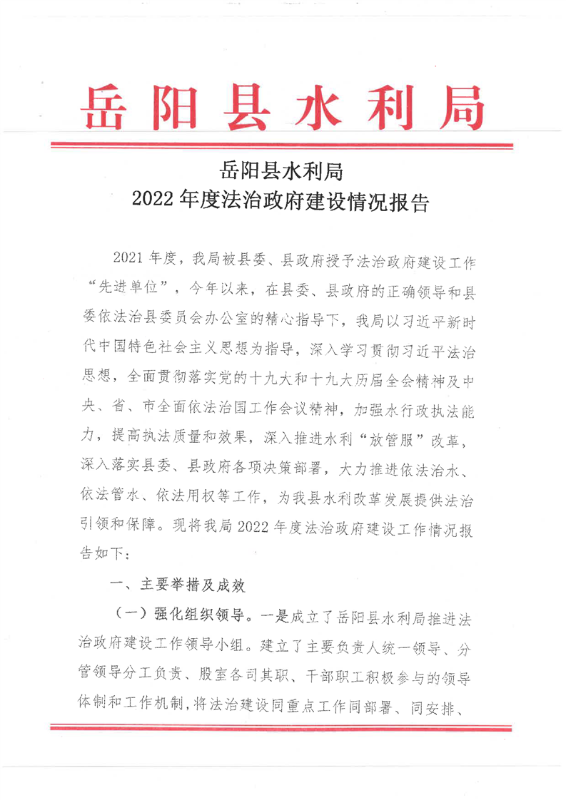 嶽陽縣水利局2022年度法治政府建設情況報告