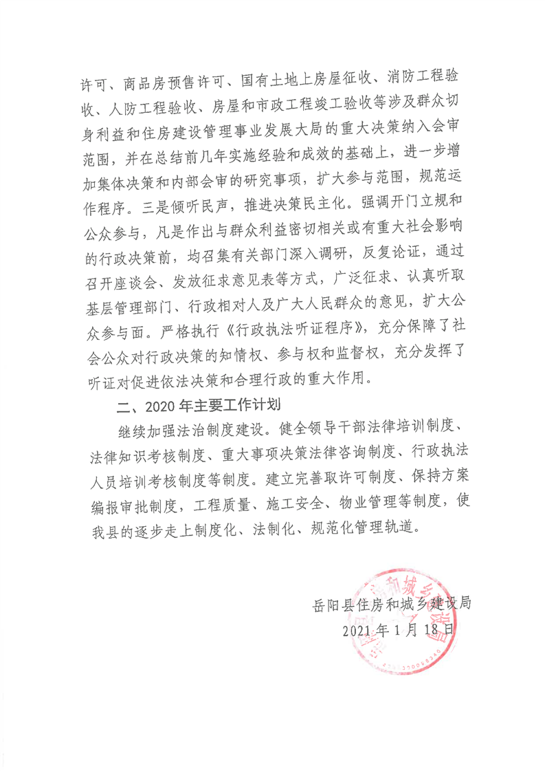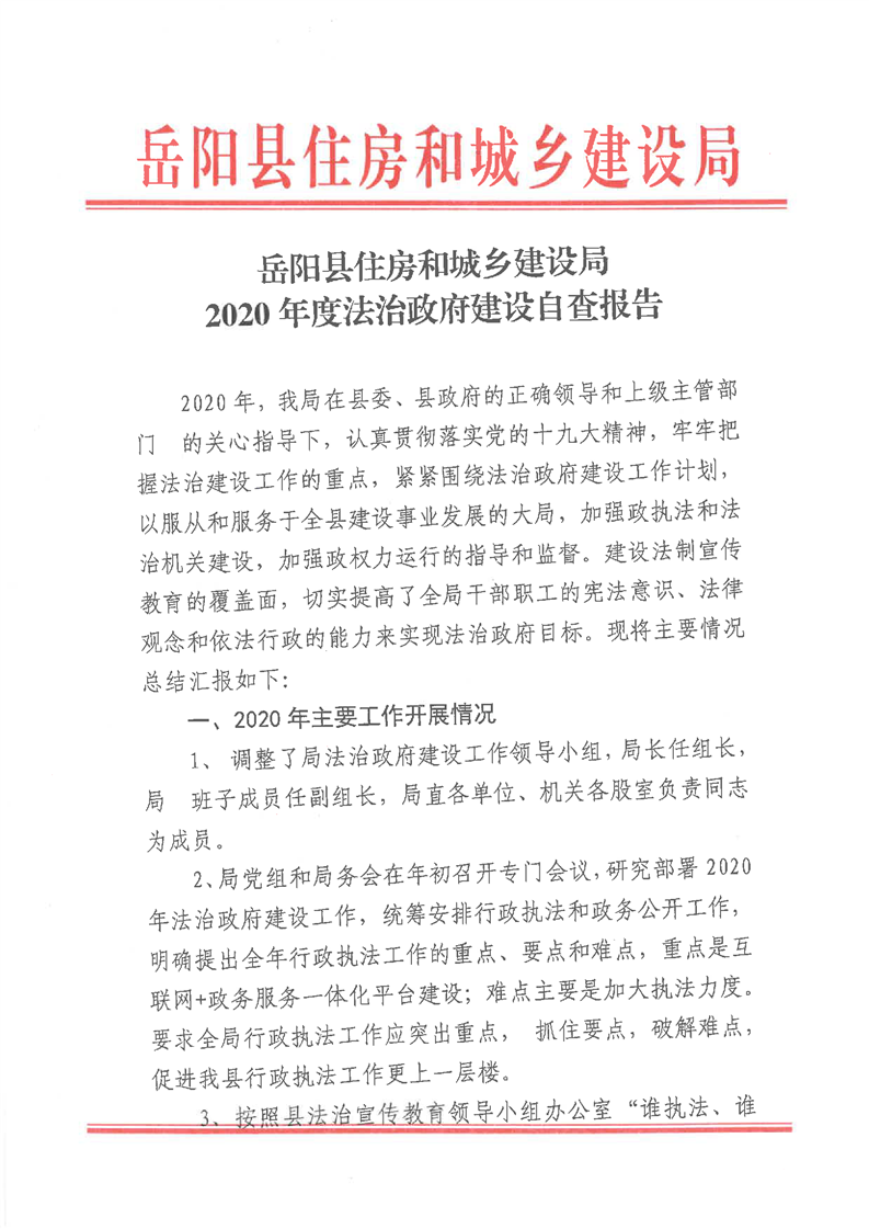 嶽陽縣住房和城鄉建設局2020年度法治政府建設報告