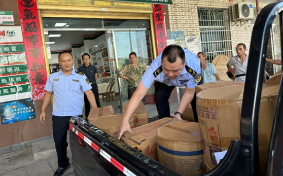 為有效防範和杜絕安全生產事故發生,保障人民群眾生命財產安全,連日來,嶽陽縣筻口鎮不斷強化措施,執法人員深入到集鎮各大小商鋪、批發部、便利超市,深入到商家後方倉庫、地下室,借用儀器探測的科技手段進行煙花爆竹隱患排查,對發現的煙花爆竹進行清剿。8月16日,執法人員在排查中發現,遊港村李家灣超市存在非法儲存、經營煙花爆竹行為,現場收繳非法儲存、經營鞭炮19餘箱。