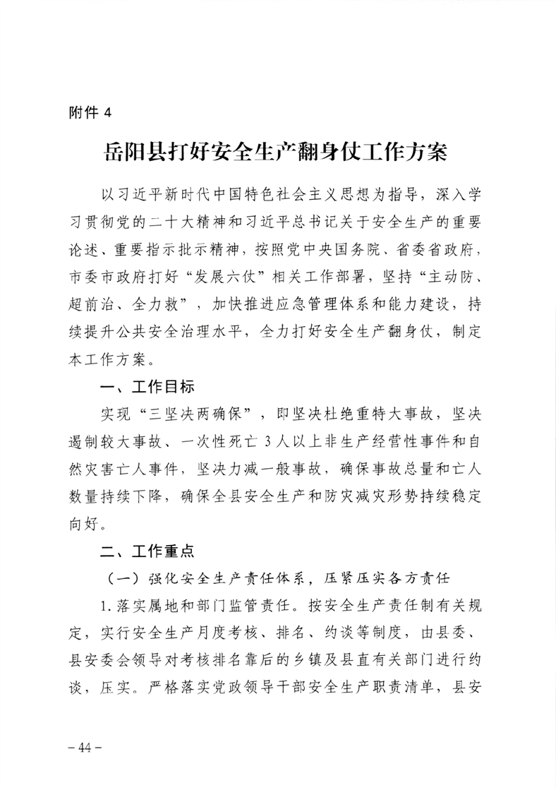 嶽陽縣打好安全生產翻身仗工作方案
