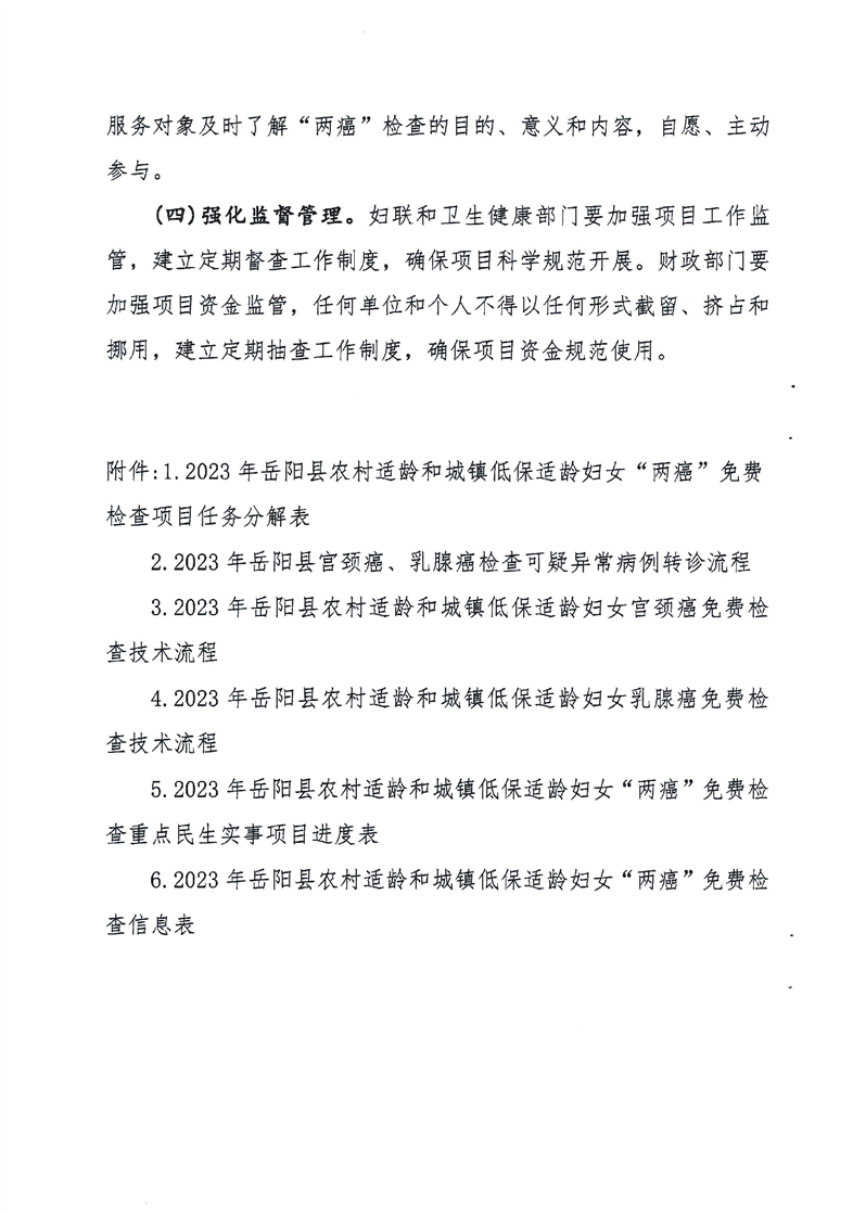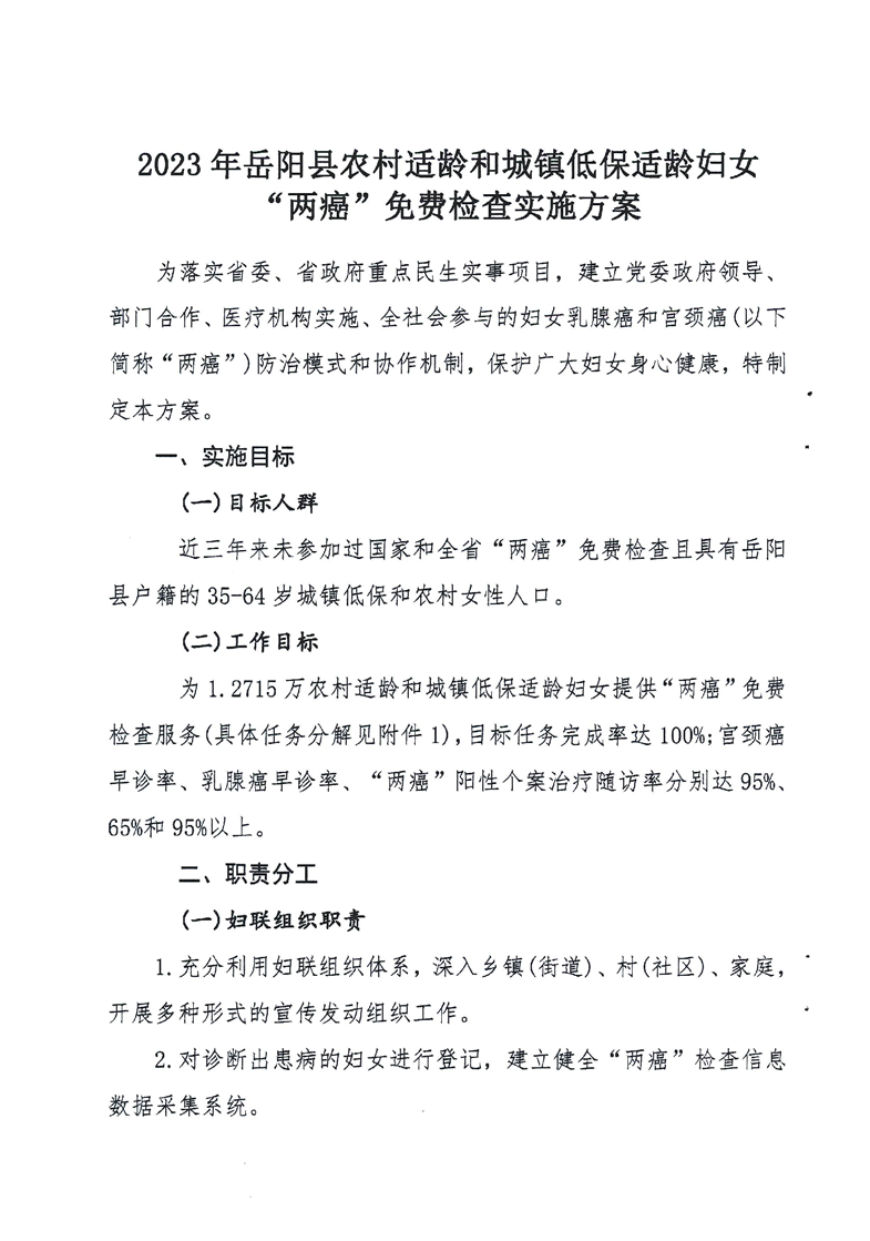 2023年嶽陽縣農村適齡和城鎮低保適齡婦女“兩癌”免費檢查實施方案