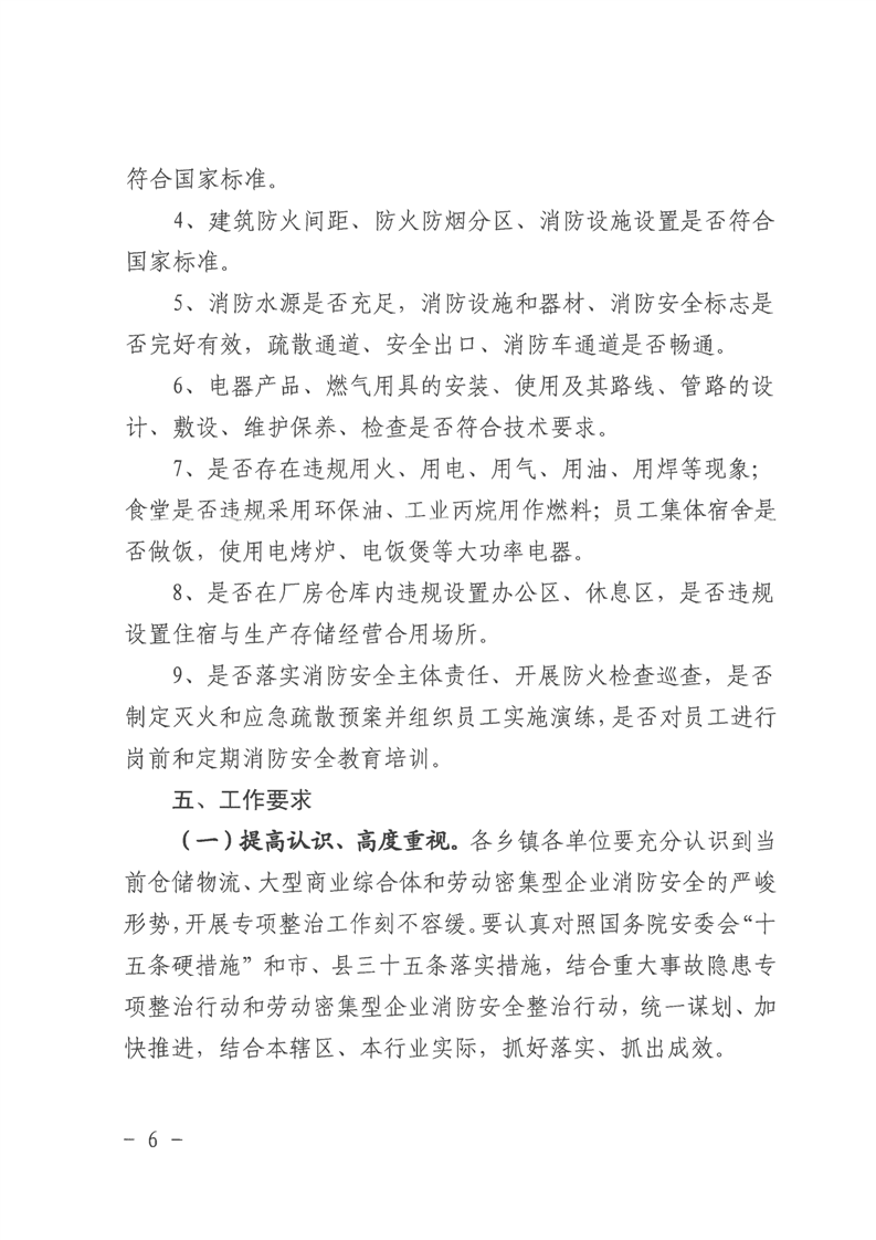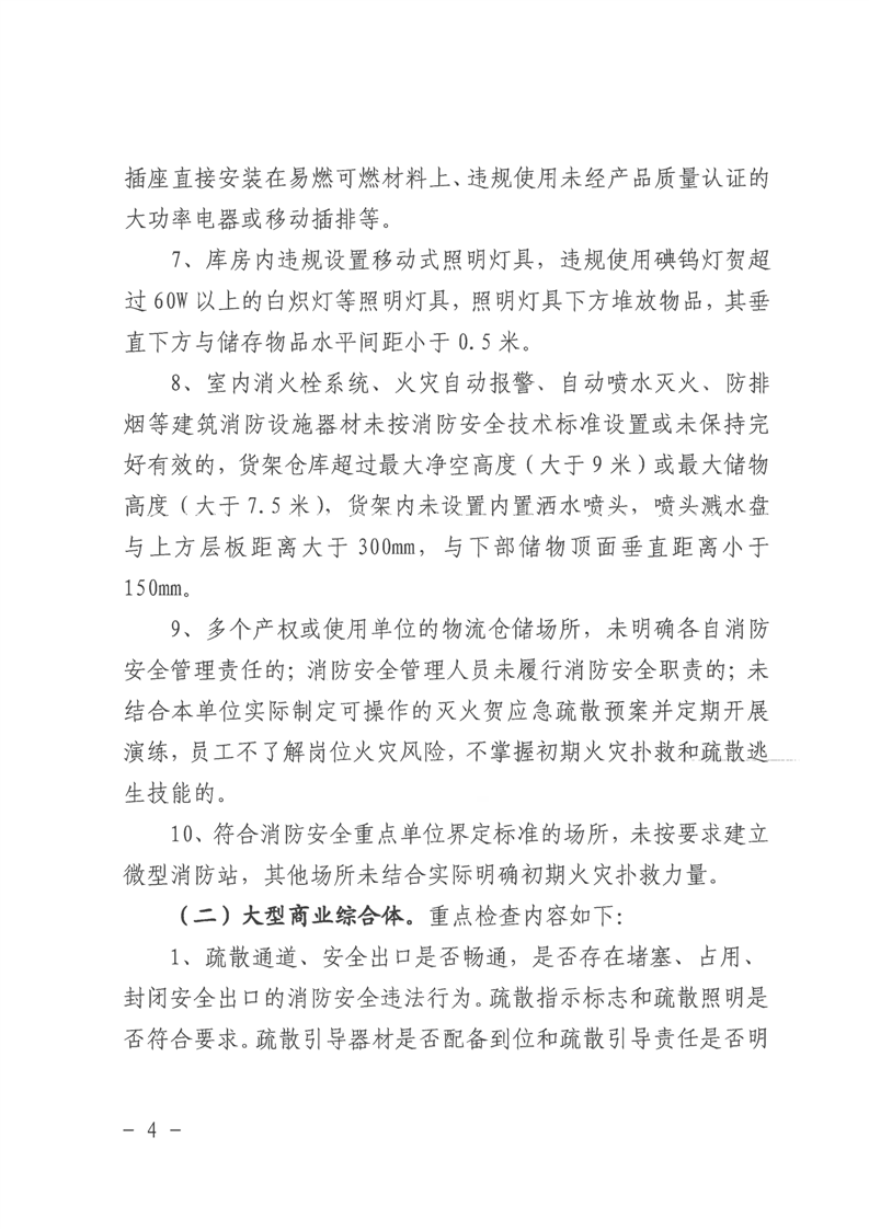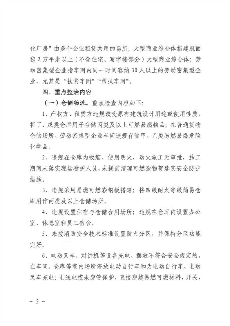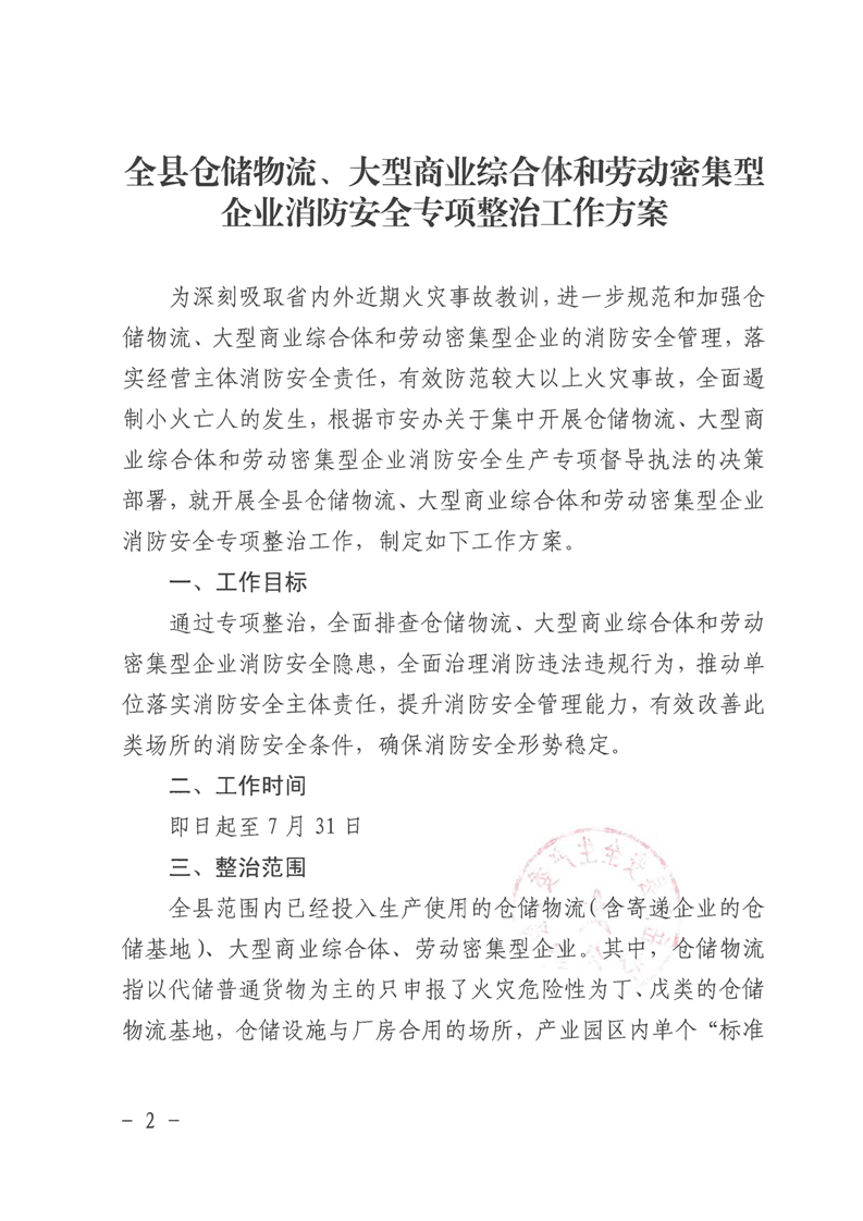 全縣倉儲物流、大型商業綜合體和勞動密集型企業消防安全專項整治工作方案