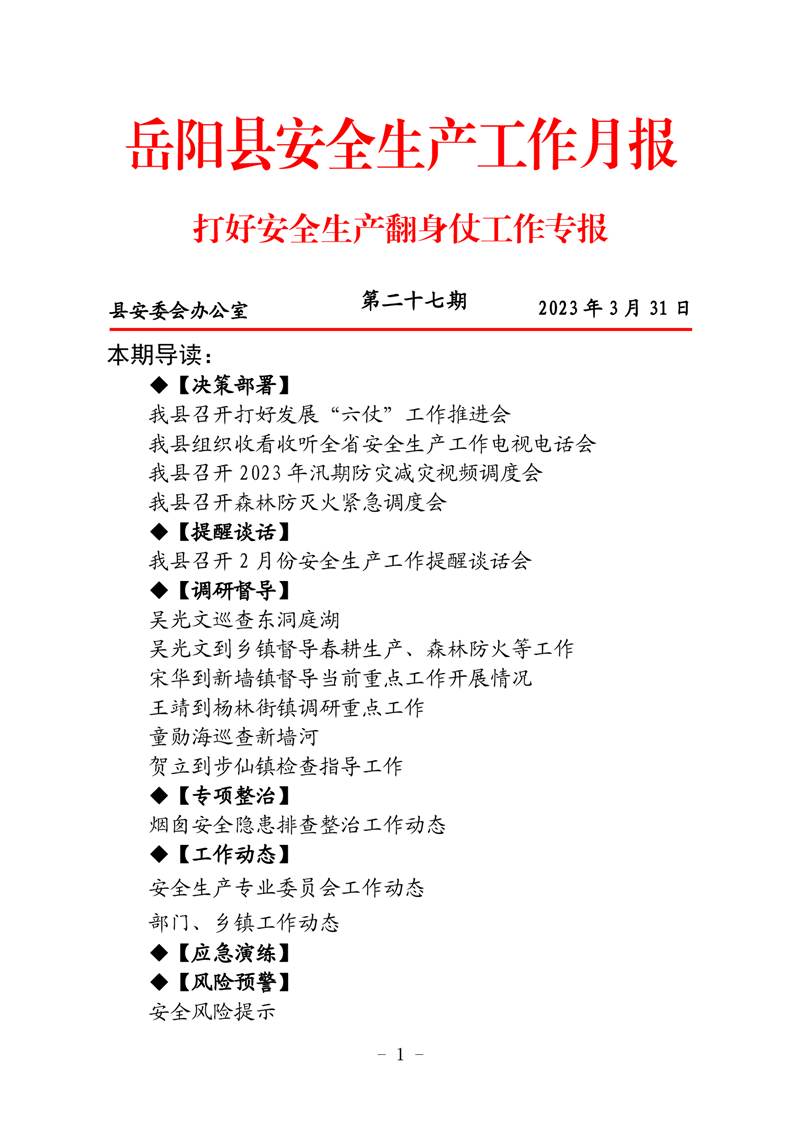 嶽陽縣打好安全生產翻身仗工作專報(二十七期)