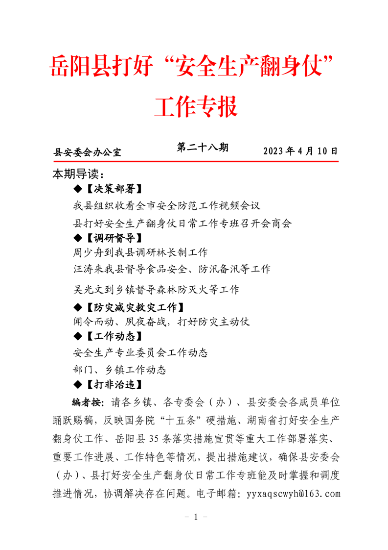 嶽陽縣打好“安全生產翻身仗”工作專報(第二十八期)