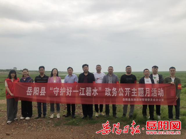 嶽陽日報全媒體訊(通訊員 施華兵)4月18日,嶽陽縣湖管係統黨員幹部在東洞庭湖岸線開展了政務公開主題月活動,主題為“守護好一江碧水”。嶽陽縣委常委、縣委辦主任王靖和副縣長張文毅到場督導。