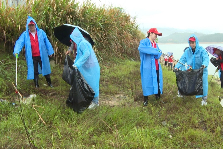 活動現場,誌願者們不畏困難,風雨兼程,身穿紅馬甲,手持垃圾鉗、垃圾袋等清理工具,沿鐵山水庫水域岸線一路清理撿拾白色塑料、廢棄物品等各類垃圾,將其分類後進行了統一清運。在大家的不懈努力下,實現了河岸無垃圾、河麵無漂浮物、河道無障礙物,切實改善了河湖麵貌和水生態環境。