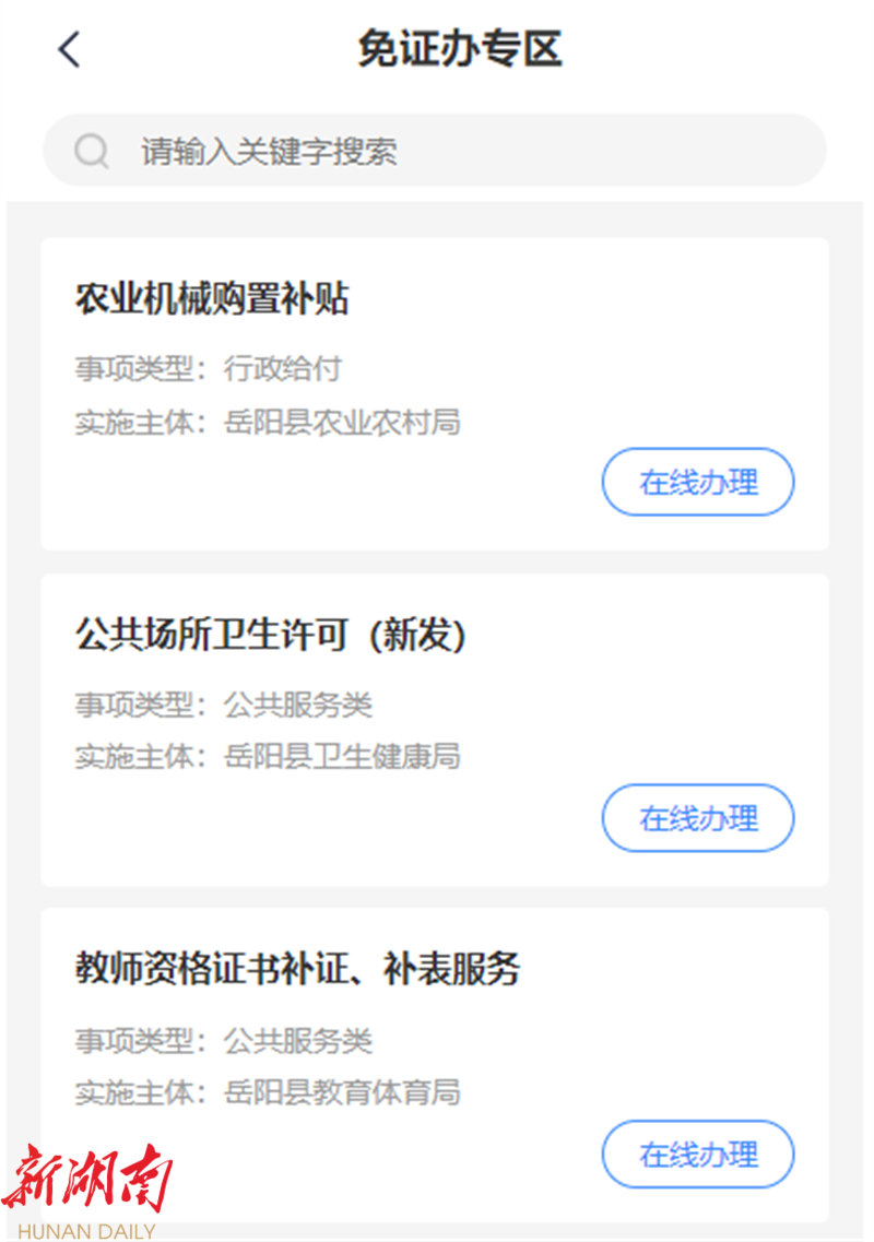湖南日報·新湖南客戶端11月17日訊(通訊員 續鼎)近日,教師李女士來嶽陽縣政務服務中心教體窗口辦理教師資格證書補表事項,在辦事過程中發現未帶身份證,手機裏也未留存身份證照片,工作人員得知此情況後,笑著說道“沒有身份證沒關係,您可以進入‘湘易辦’APP嶽陽縣旗艦店‘免證辦’專區,在線辦理教師資格證補表服務,申請過程中無需手動上傳證件,點擊‘電子證照’即可。”李女士按照工作人員的指導僅用了幾分鍾就順利完成補表,不禁對這種高效創新的服務連連點讚。