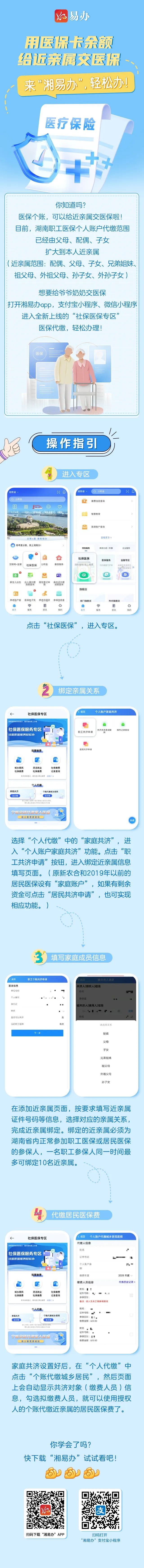用醫保卡餘額給近親屬交醫保,來“湘易辦”,輕鬆辦!