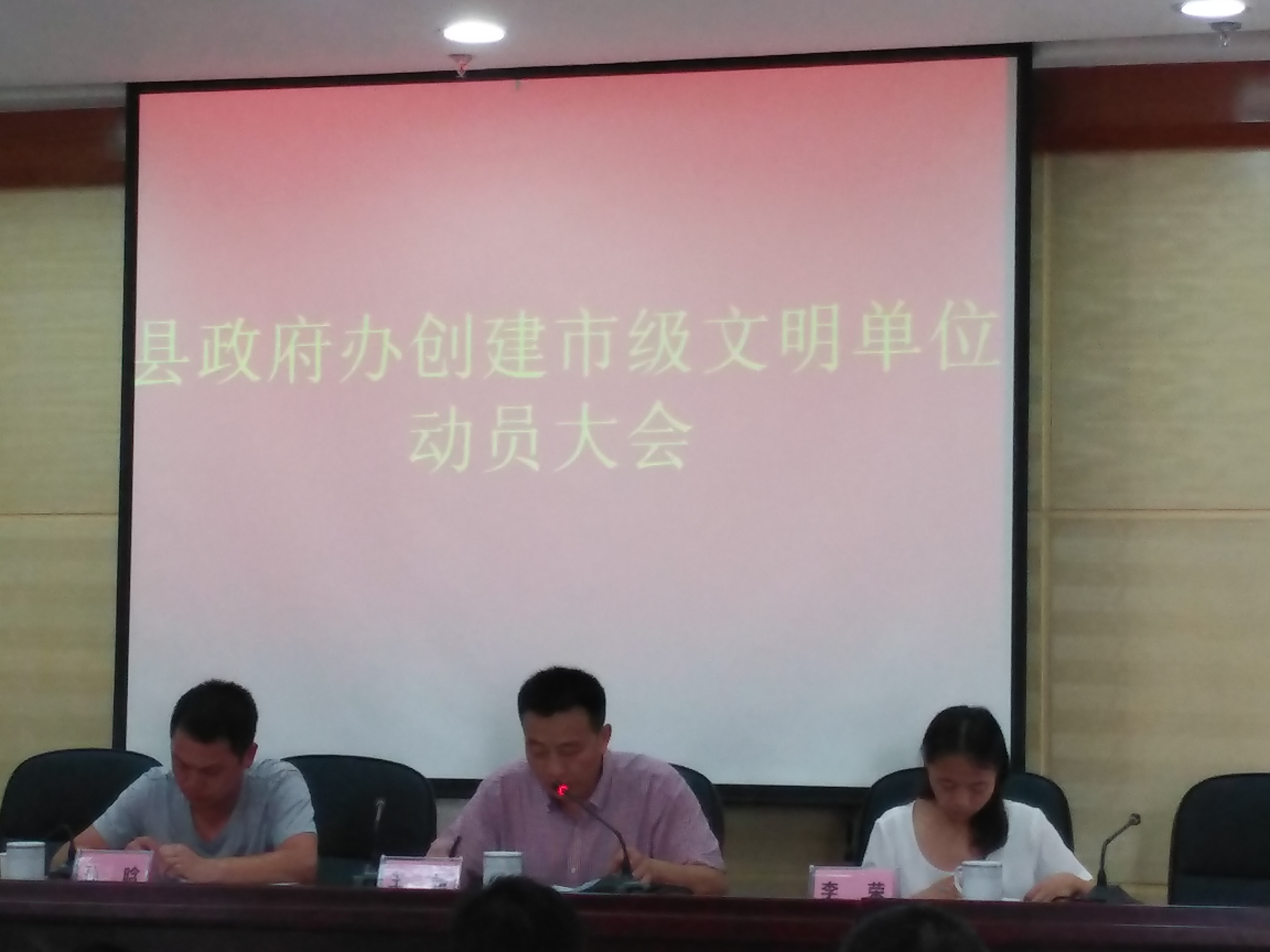 6-2,縣政府辦召開市級文明單位創建動員會,政府辦全體機關幹部、政府大院單位相關責任人參加。政府辦黨組書記、主任王靖強調,今-要通過軟件硬件齊抓、業務隊伍共進來全力創建文明單位,要抓好環境整潔、勤儉節約、安全保衛和機關文化來提升常工作水平,完善創建基礎;要強化崗位責任和服務意識、優化服務環境來提升文明服務水平;要抓好道德講堂、誌願活動、文明評比等活動載體來豐富創建活動,並在組織、宣傳、考核上全力保障,力爭一舉創建成功。會議還邀請縣文明辦主任孫晗作了業務輔導。(徐洪濤)
