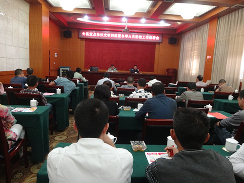 會上,大隊教導員通報了今-以來全國各地發生的重大火災情況,並分析了轄區火災形式;縣公安局副局長陳燕輝宣讀了《全縣消防安全重點單位文明城市創建工作方案》;隨後大隊參謀向各重點單位發放並簽署了《創全國縣級文明城市消防安全承諾書》,及消防安全宣傳的廣告宣傳模板和消防宣傳語。