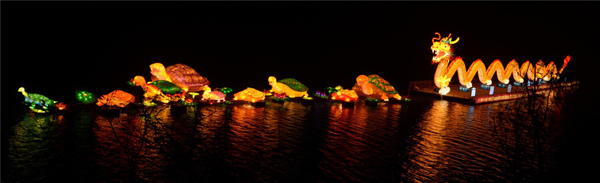 今-的南湖,因為有了燈會,而變得更加迷人靚麗。本屆燈會是嶽陽市曆史上燈展規模最大、燈組品類最多、景觀效果最好、跨度時間最長的燈會,由來自四川自貢的民間藝人布展,采用我國傳統的彩燈製作工藝和聲、光、電等高科技手法,通過水、陸、空立體布展的方式,體現南湖獨特的人文傳奇故事和鮮明的時代主題。